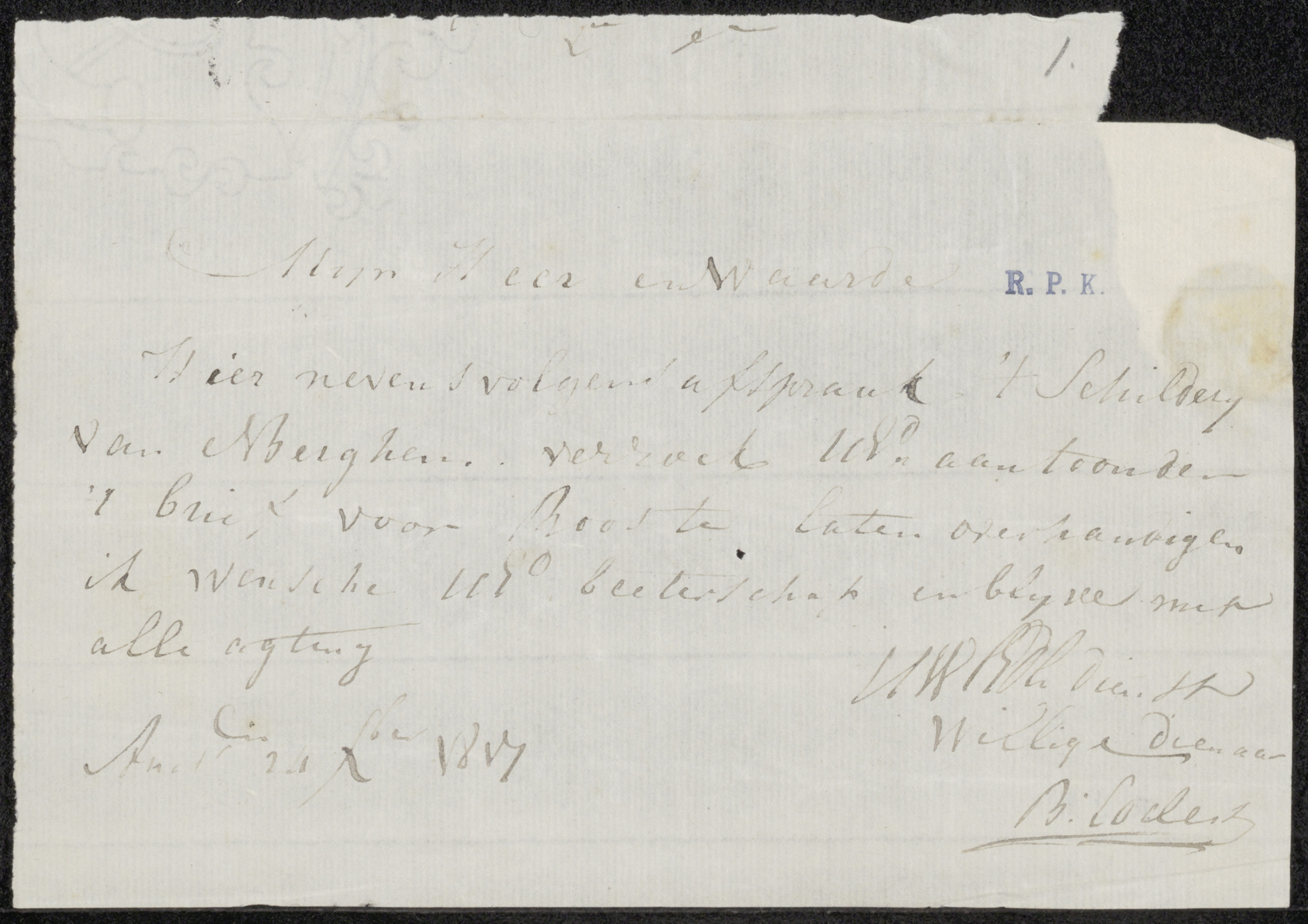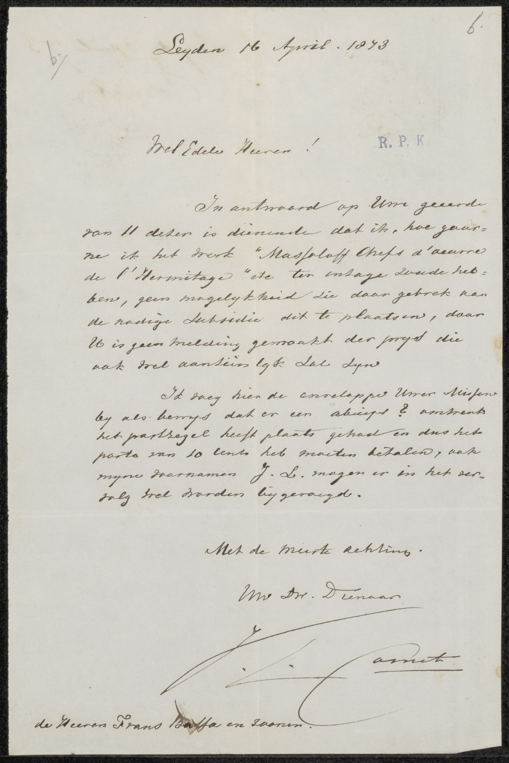 Brief aan Alexander Pierre Philip Cornelis Robert de...