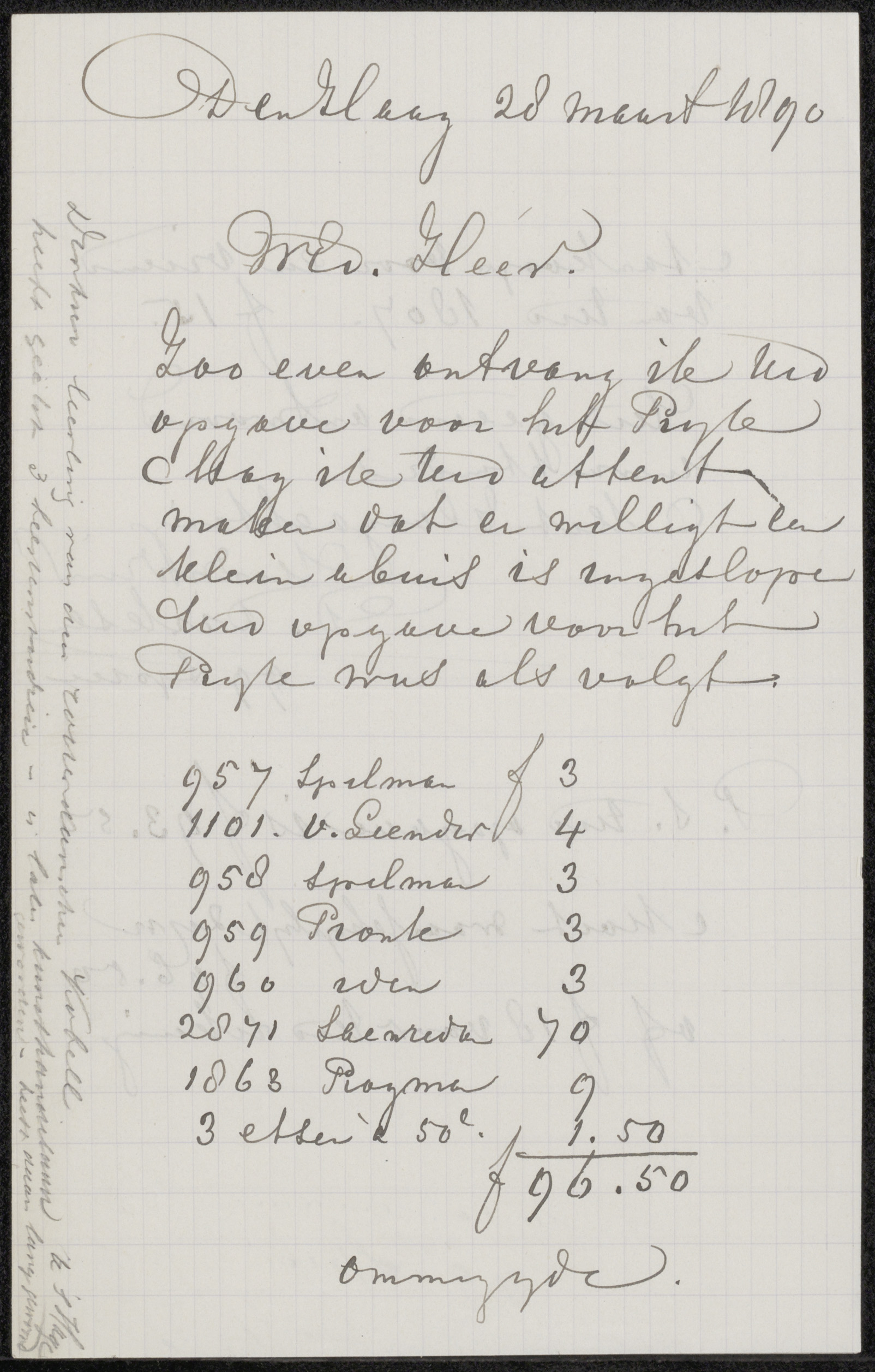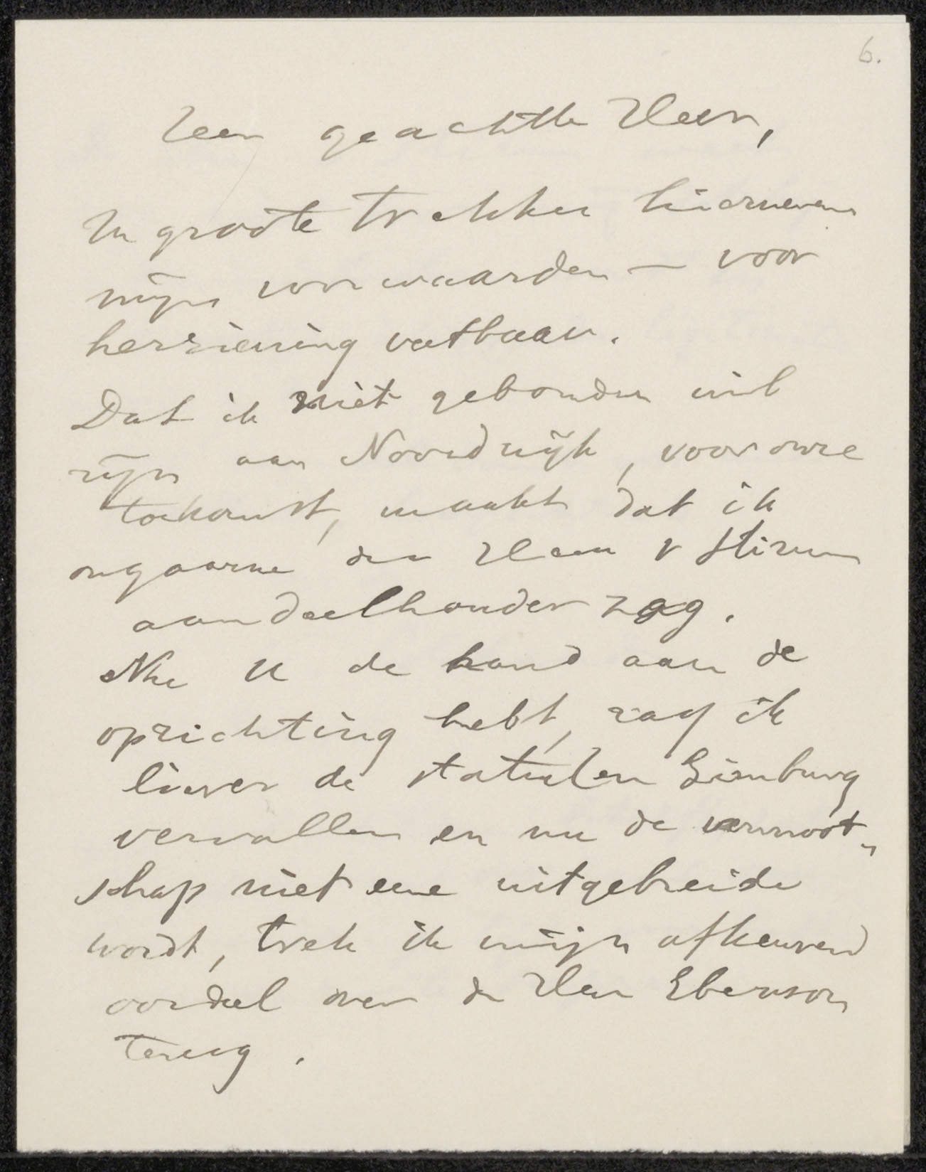 Brief aan G.M.C. Hooft, secretaris van de commissie ...