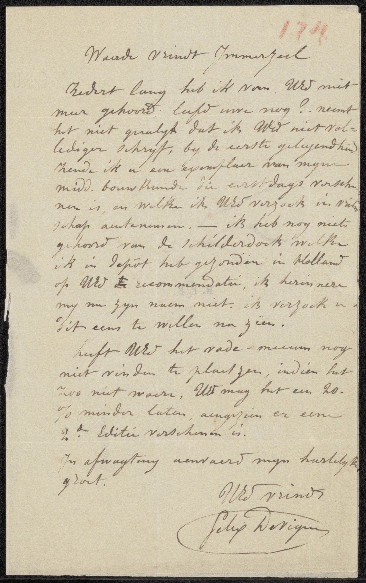 Brief aan anoniem, mogelijk aan C.J. de Lang