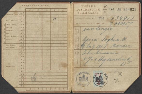 Tweede distributie stamkaart van Lucy Kugler-van Lan...