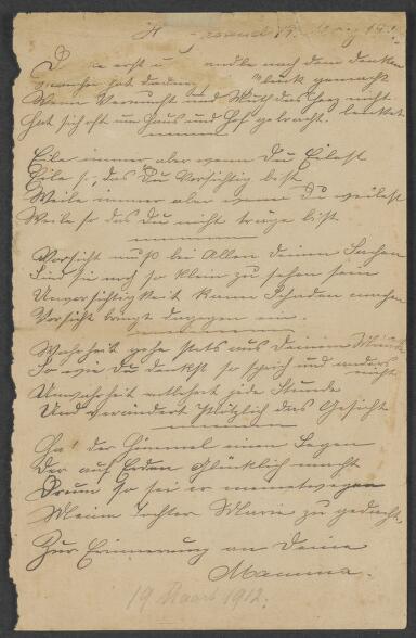 Gedicht van Emma Kugler voor Victor Kugler, 19 maart...
