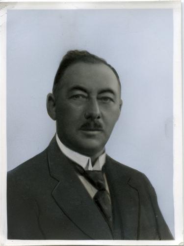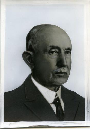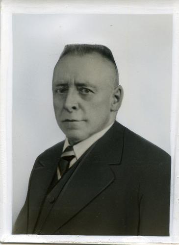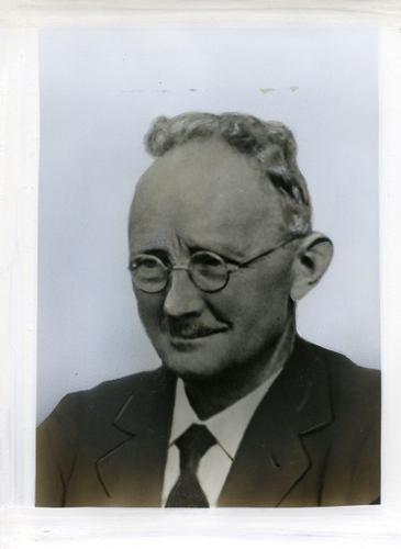 Foto in zwart-wit van de heer J.H. de Boer, directeu...