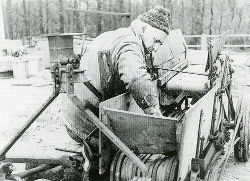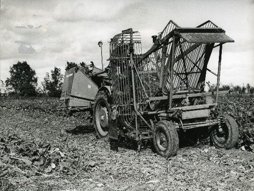 Foto in zwart-wit van een bietenrooier door J.D. de ...