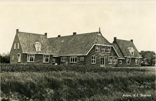 Prentbriefkaart in zwart-wit van het K.I. station te...