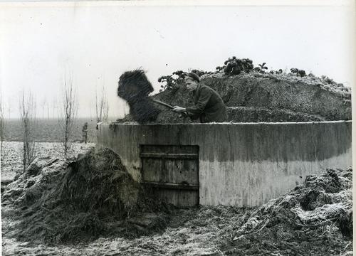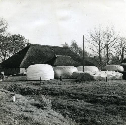 Foto in zwart-wit van kuilbulten afgedekt met landbo...