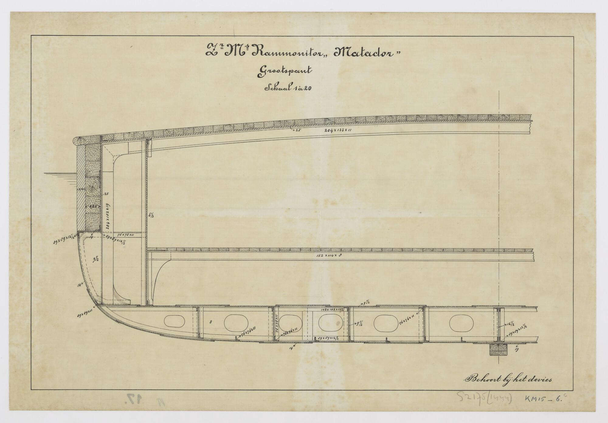 Dwarsdoorsnede van het grootspant van de rammonitor ...