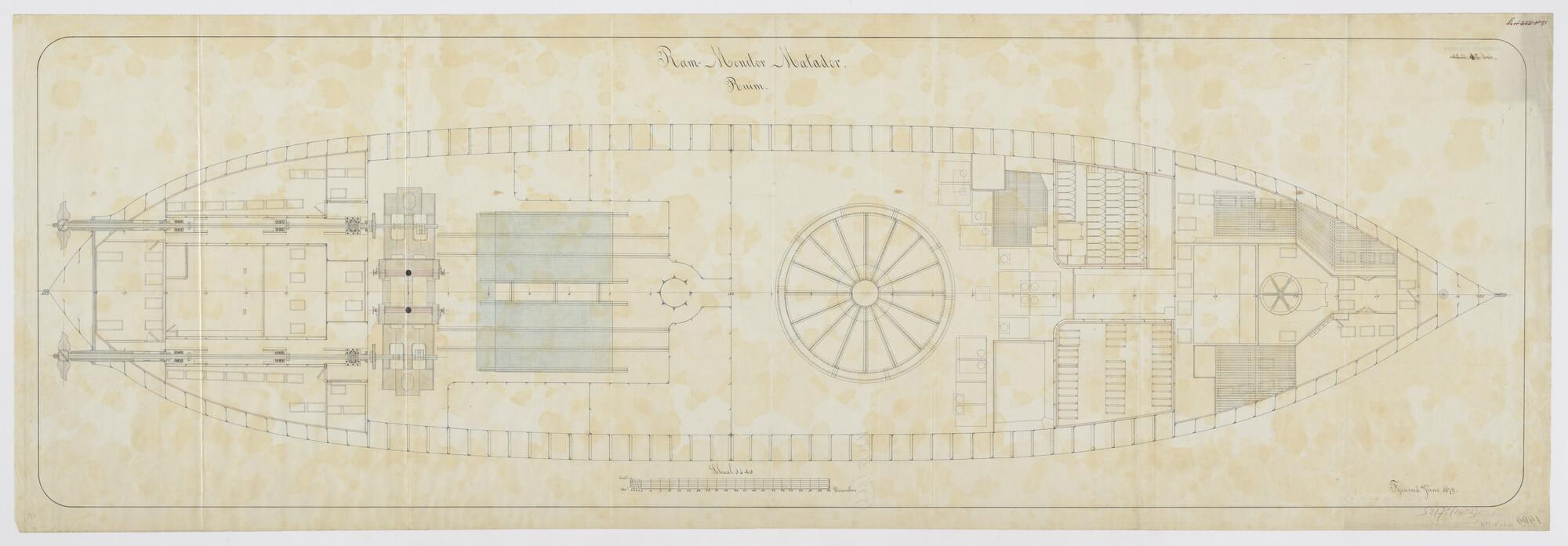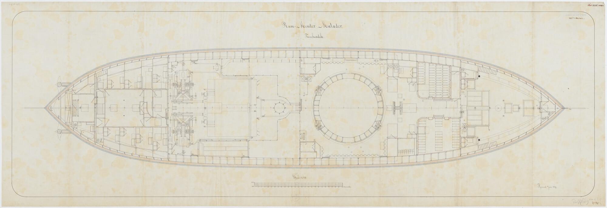 Indelingstekening van het tussendek van de rammonito...