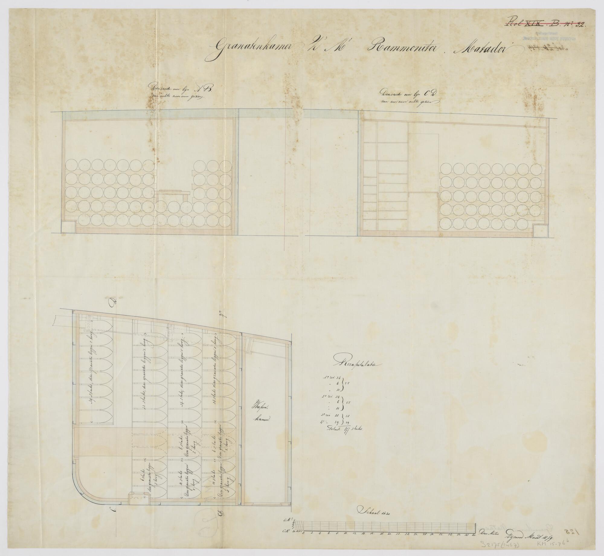 Diverse doorsneden van de granaatkamer van de rammon...