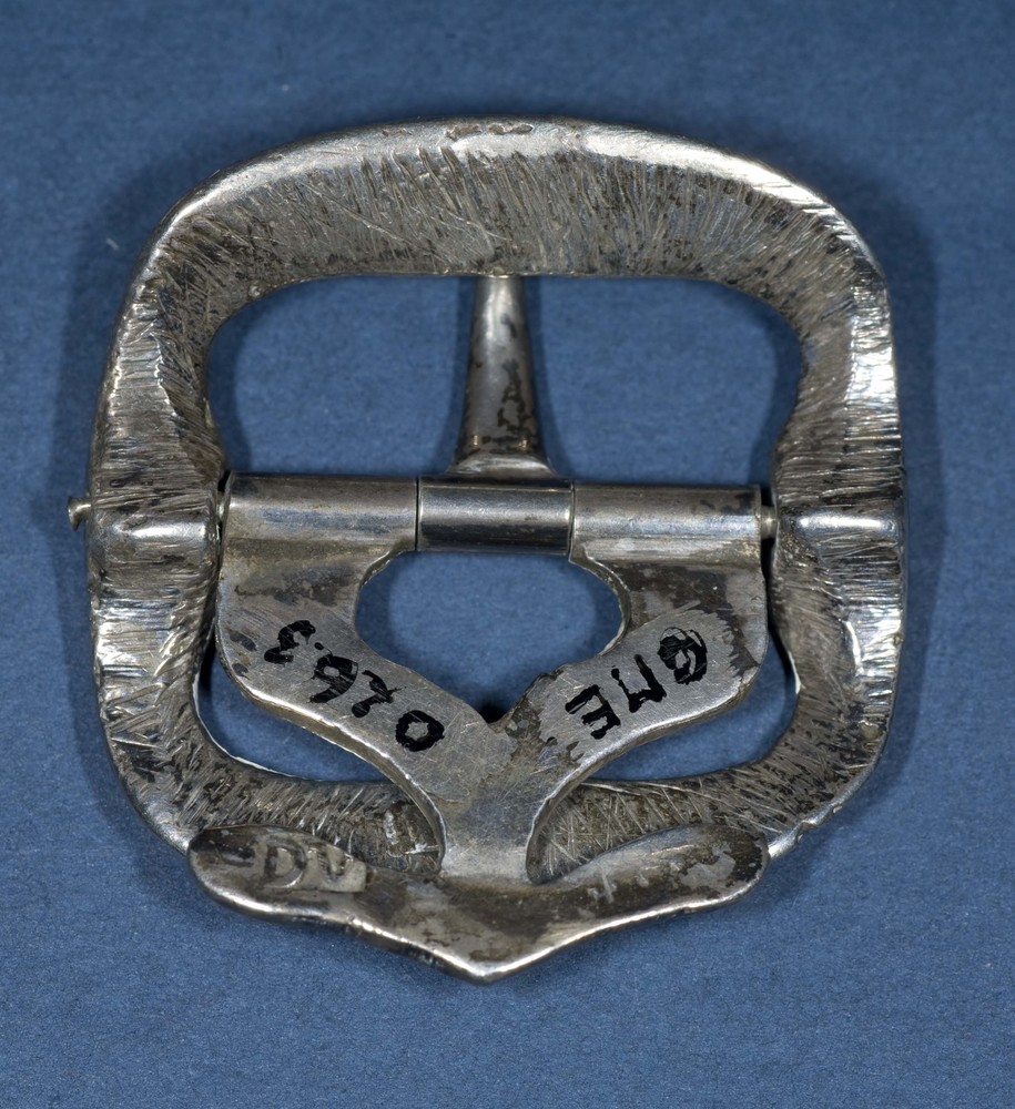 Gesp van zilver met merk, ter bevestiging op een kni...