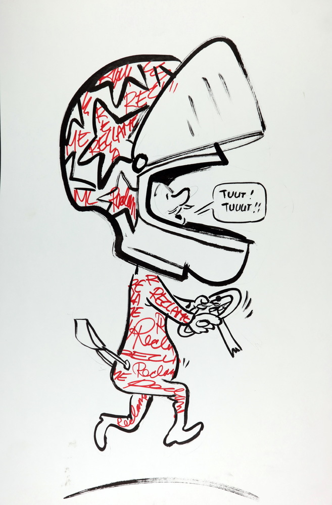 Standbeeld van Bep van Klaveren in zijn karaktiristi...