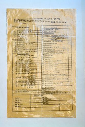 Bestellijst divers ziekenhuismateriaal