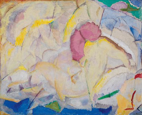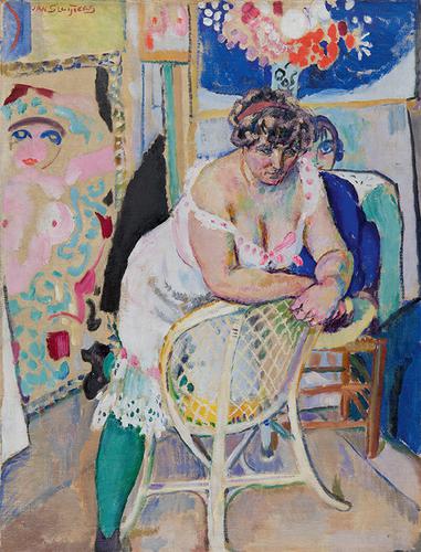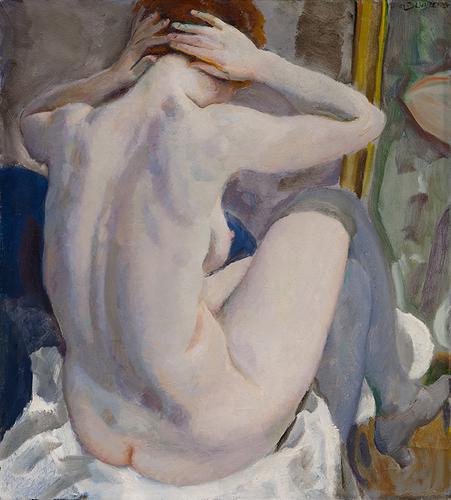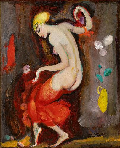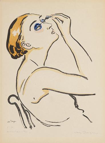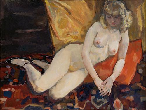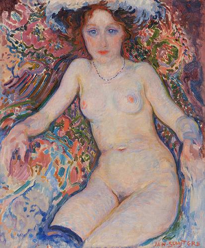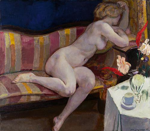 Liggend vrouwelijk naakt, met zwarte schoenen
