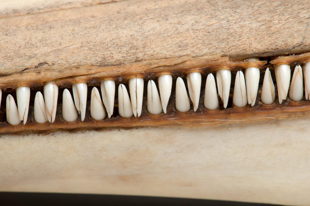 Onder- en bovenkaak van een zandhaai