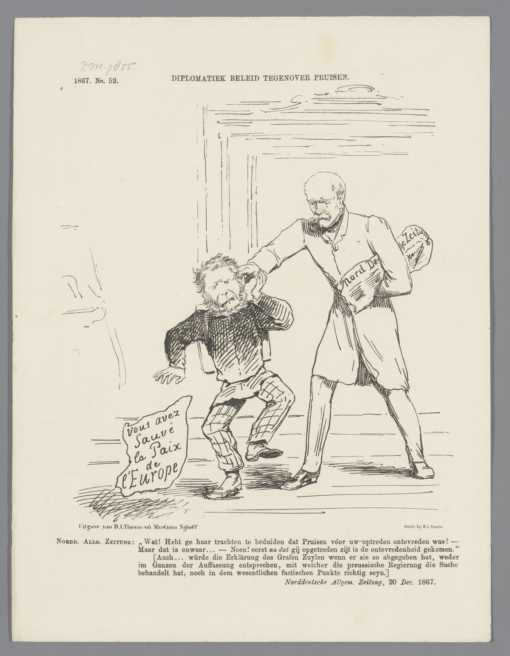 Spotprent op Bismarck en minister Van Zuylen, 1867