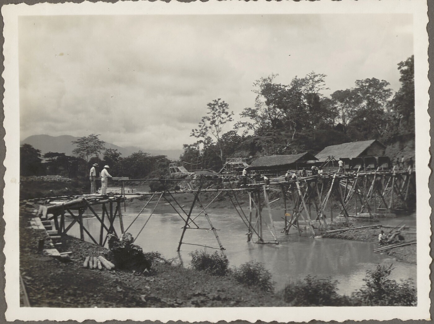 Javaanse arbeiders aan het werk bij de werkbrug over...