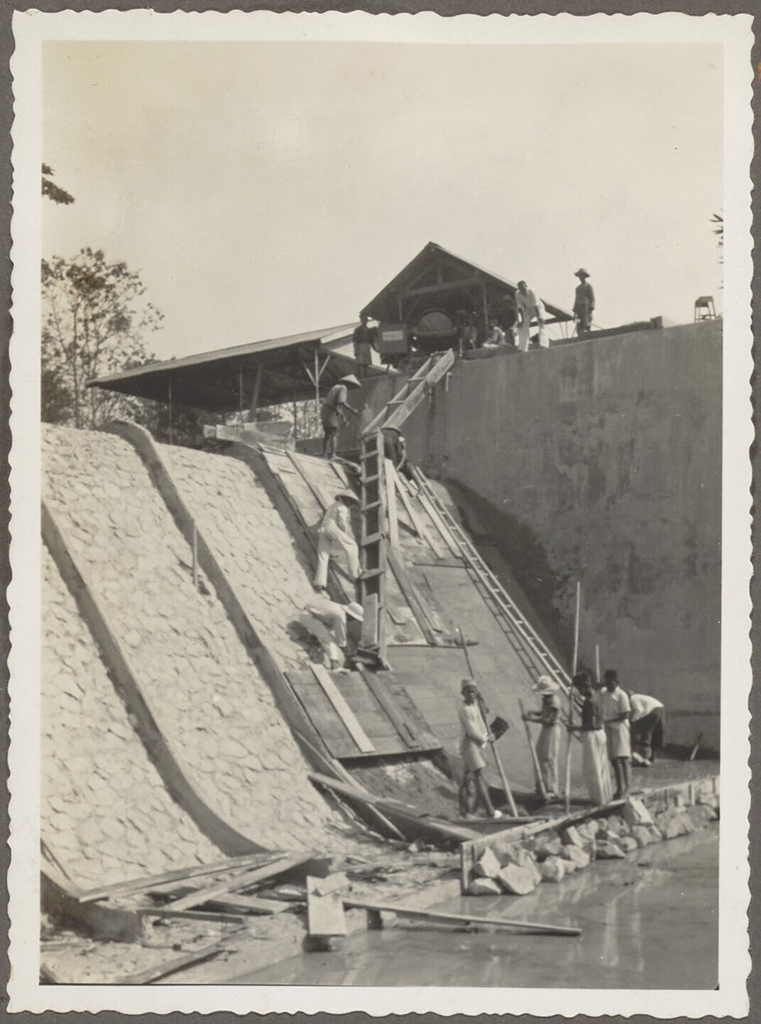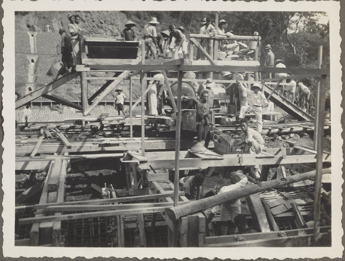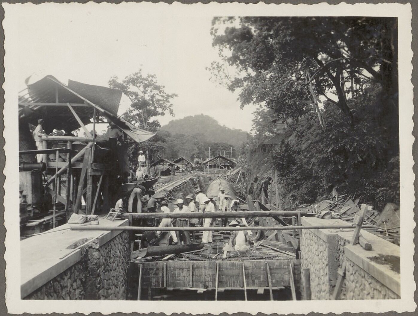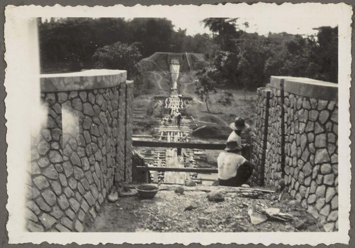 Woelbak in aanbouw door Javaanse arbeiders