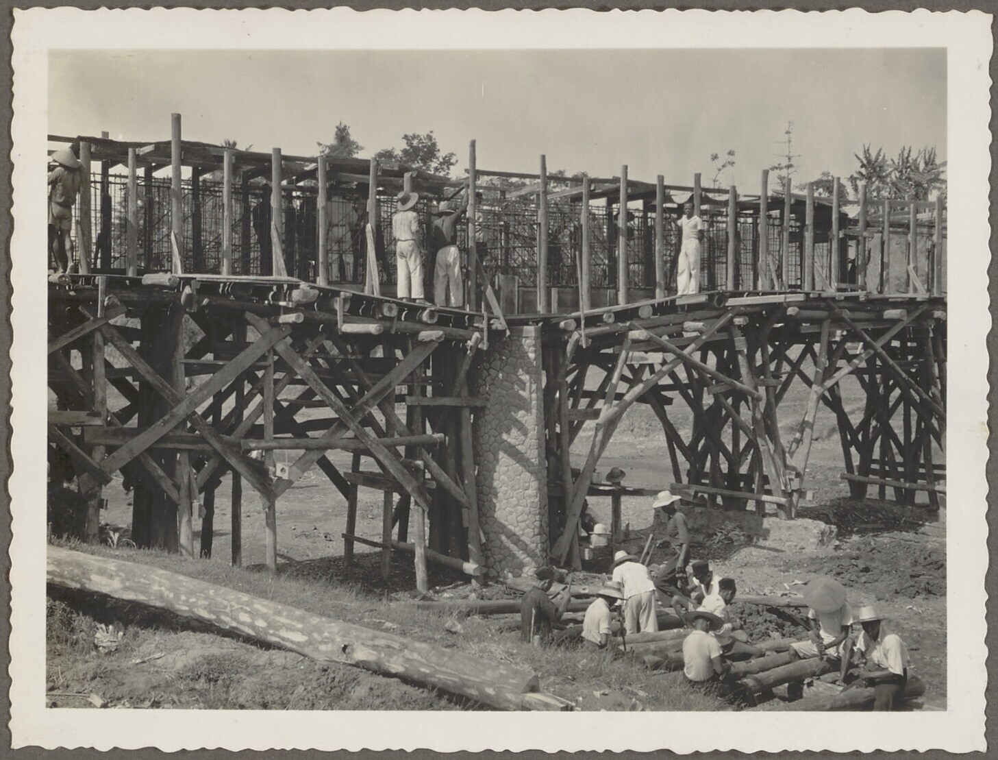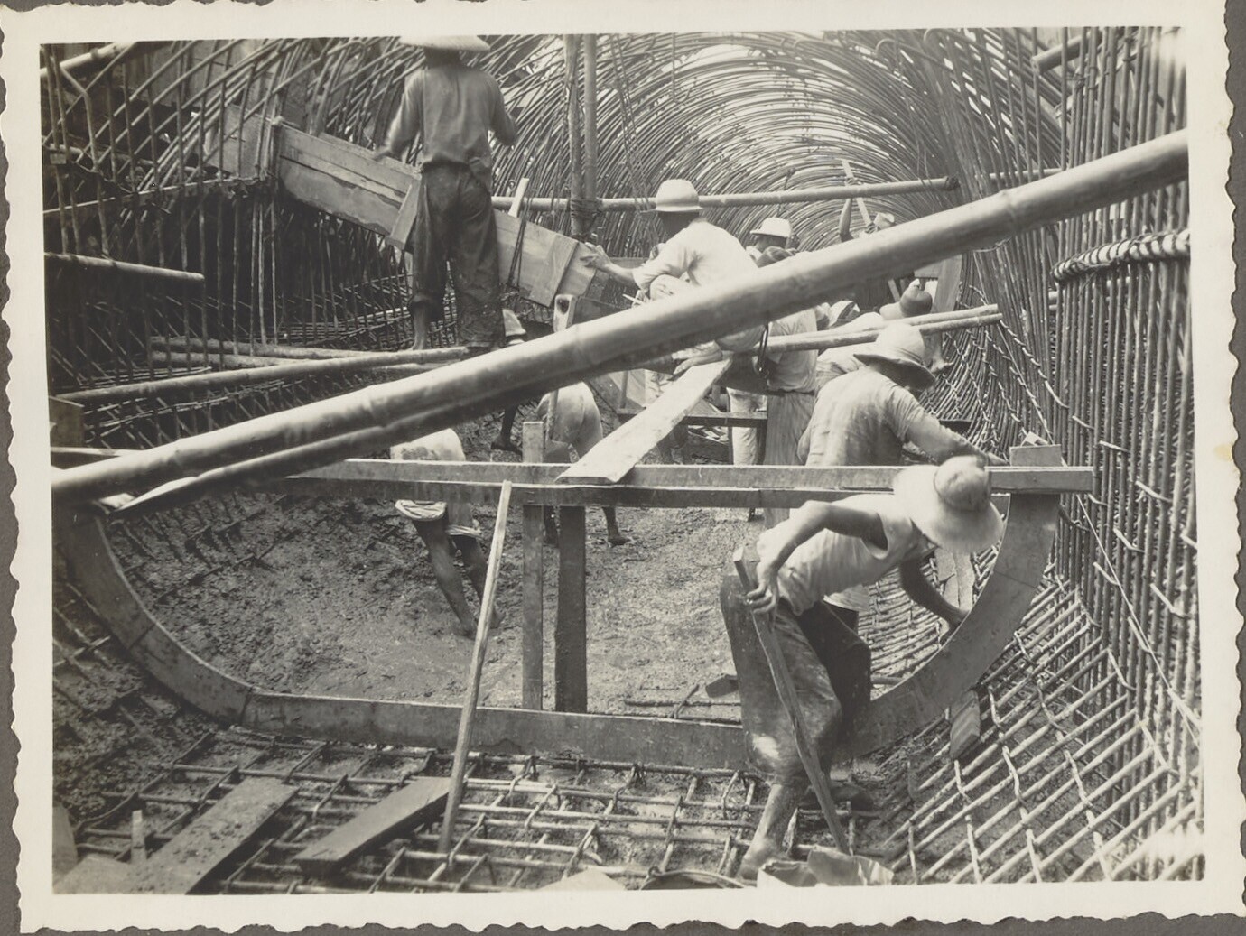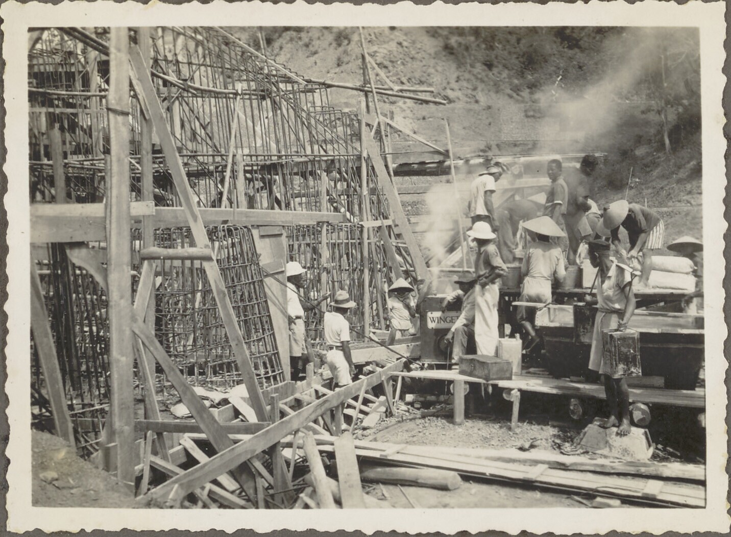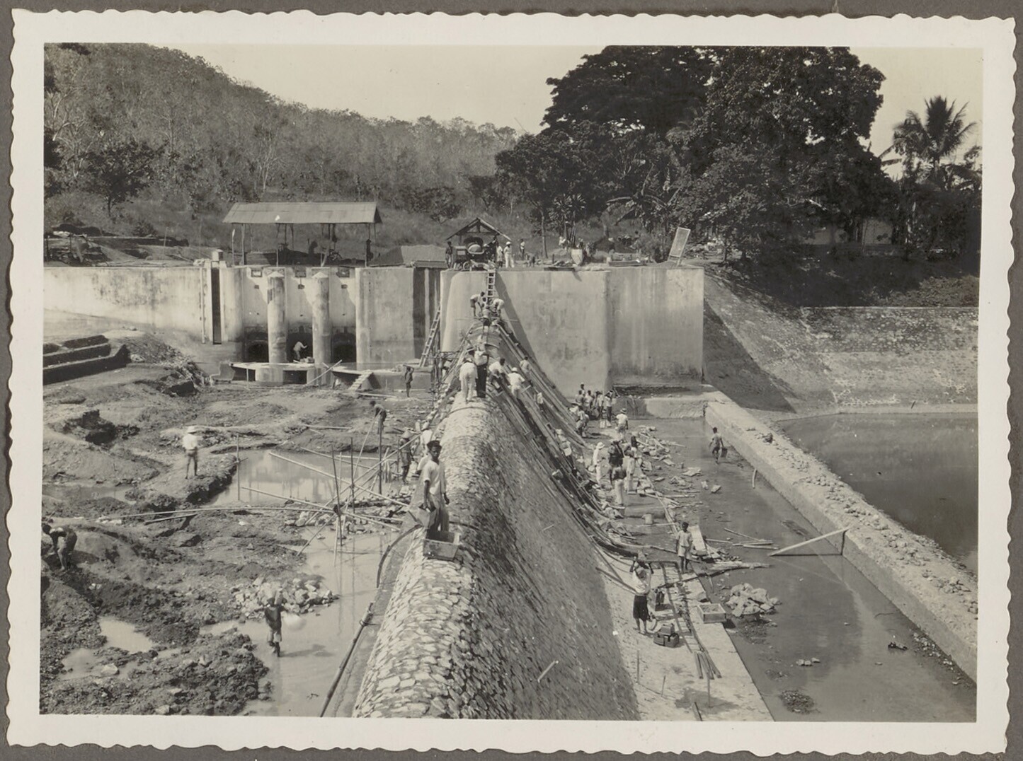 Woelbak in aanbouw door Javaanse arbeiders