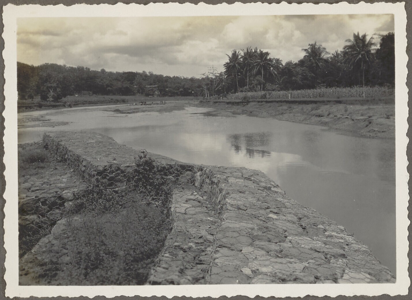 Javaanse arbeiders aan het werk bij de verdeelsluis ...