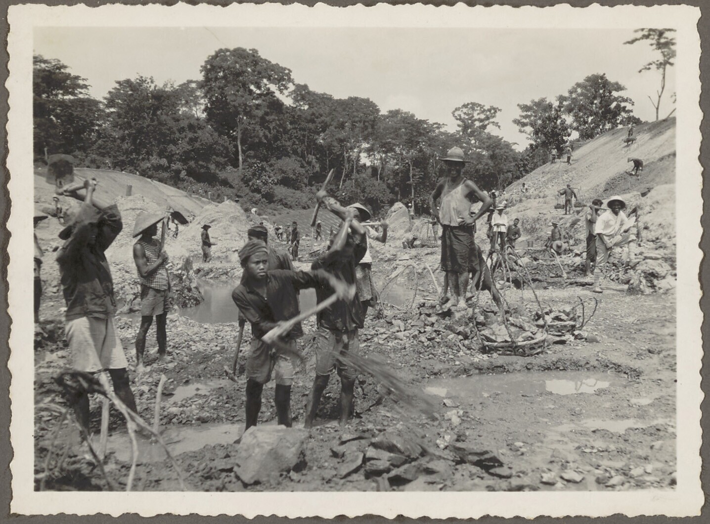 Javaanse arbeiders aan het werk op kleiwinningsgebie...