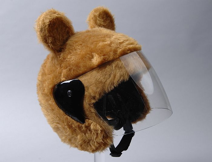 Helm voor gebruik op bromfiets, met bruin pluchen ov...