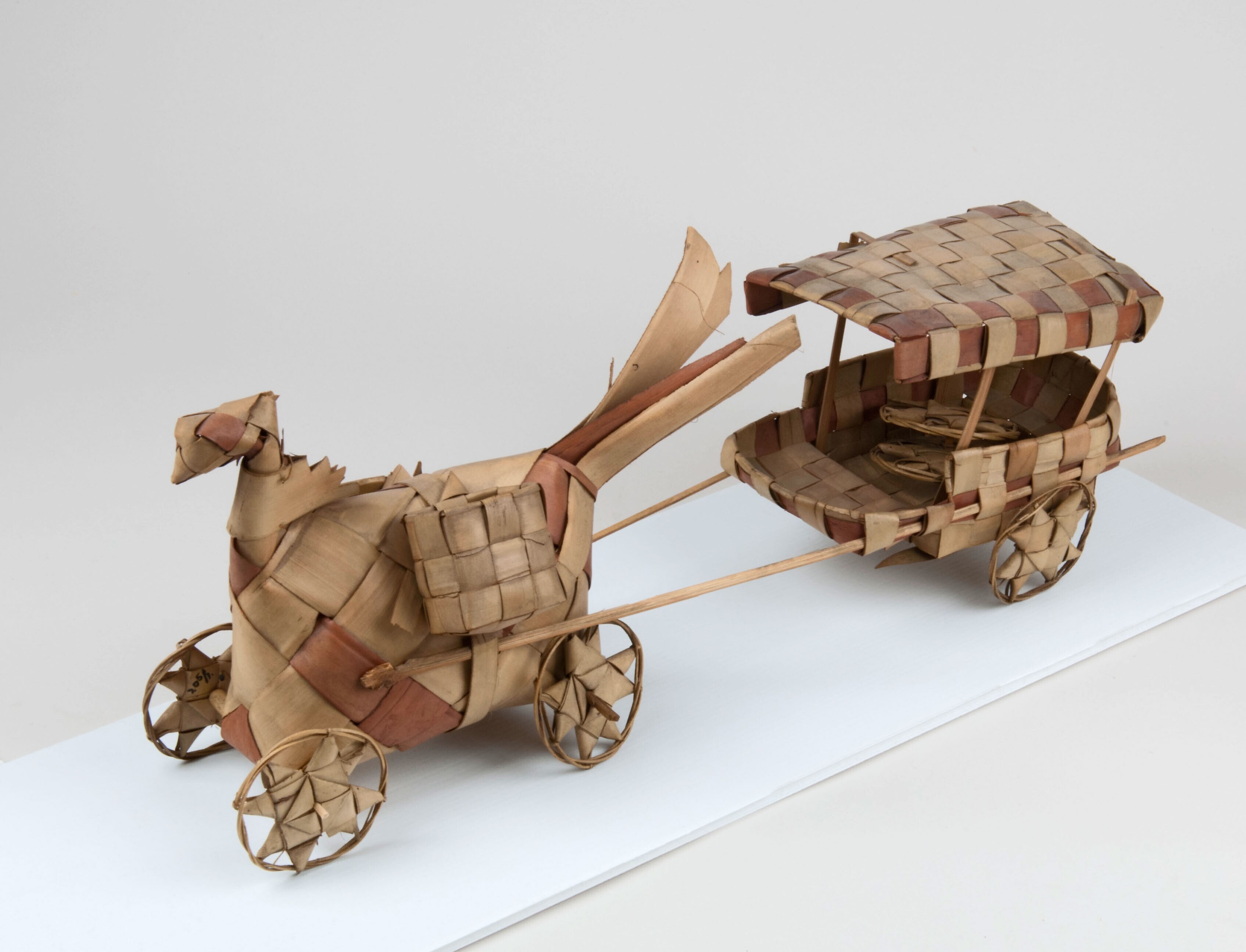 Kinderspeelgoed van lontarblad gevlochten kar met paard