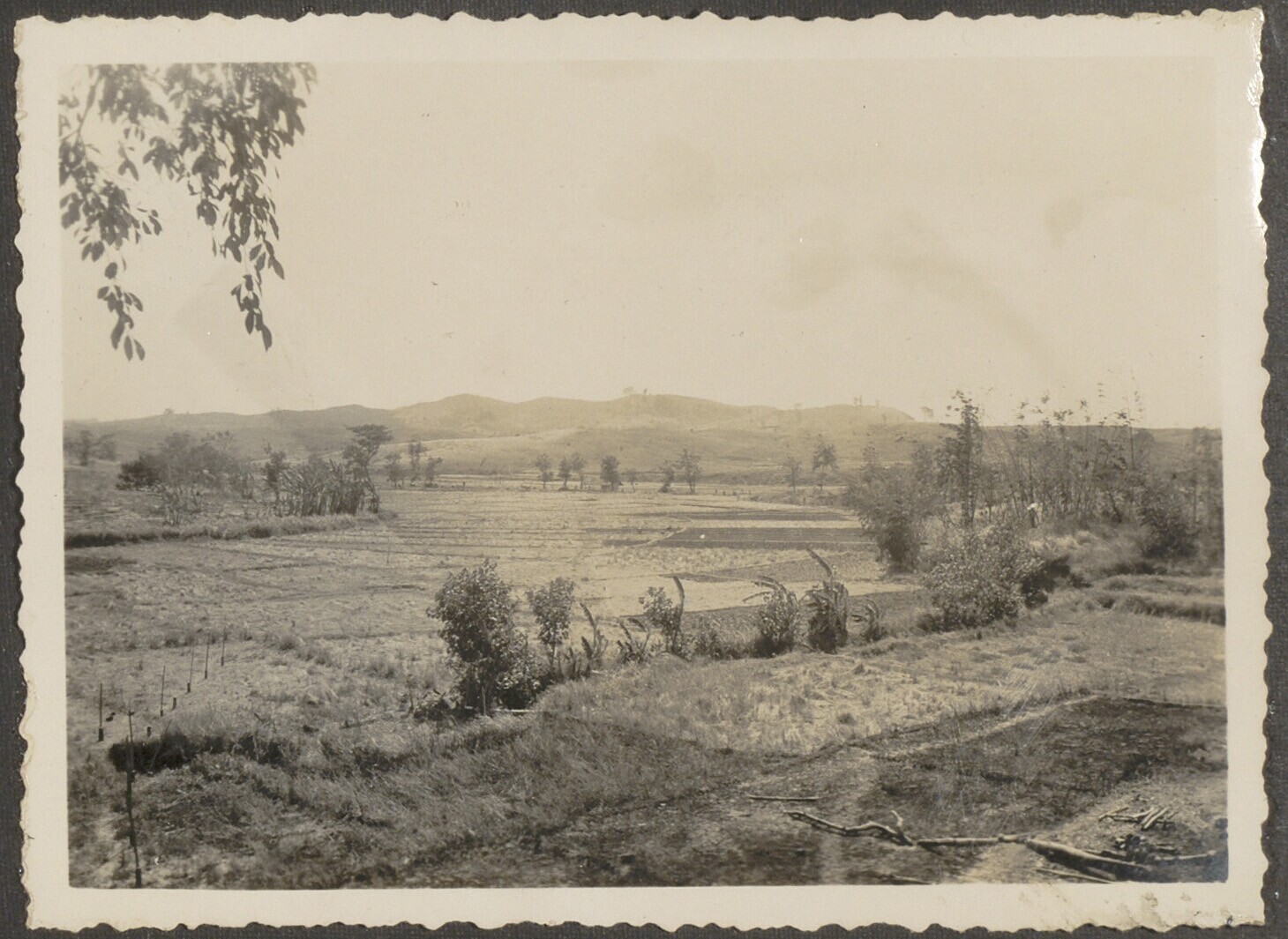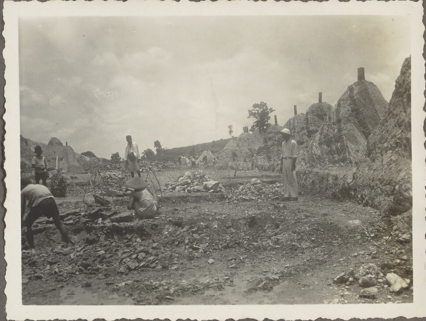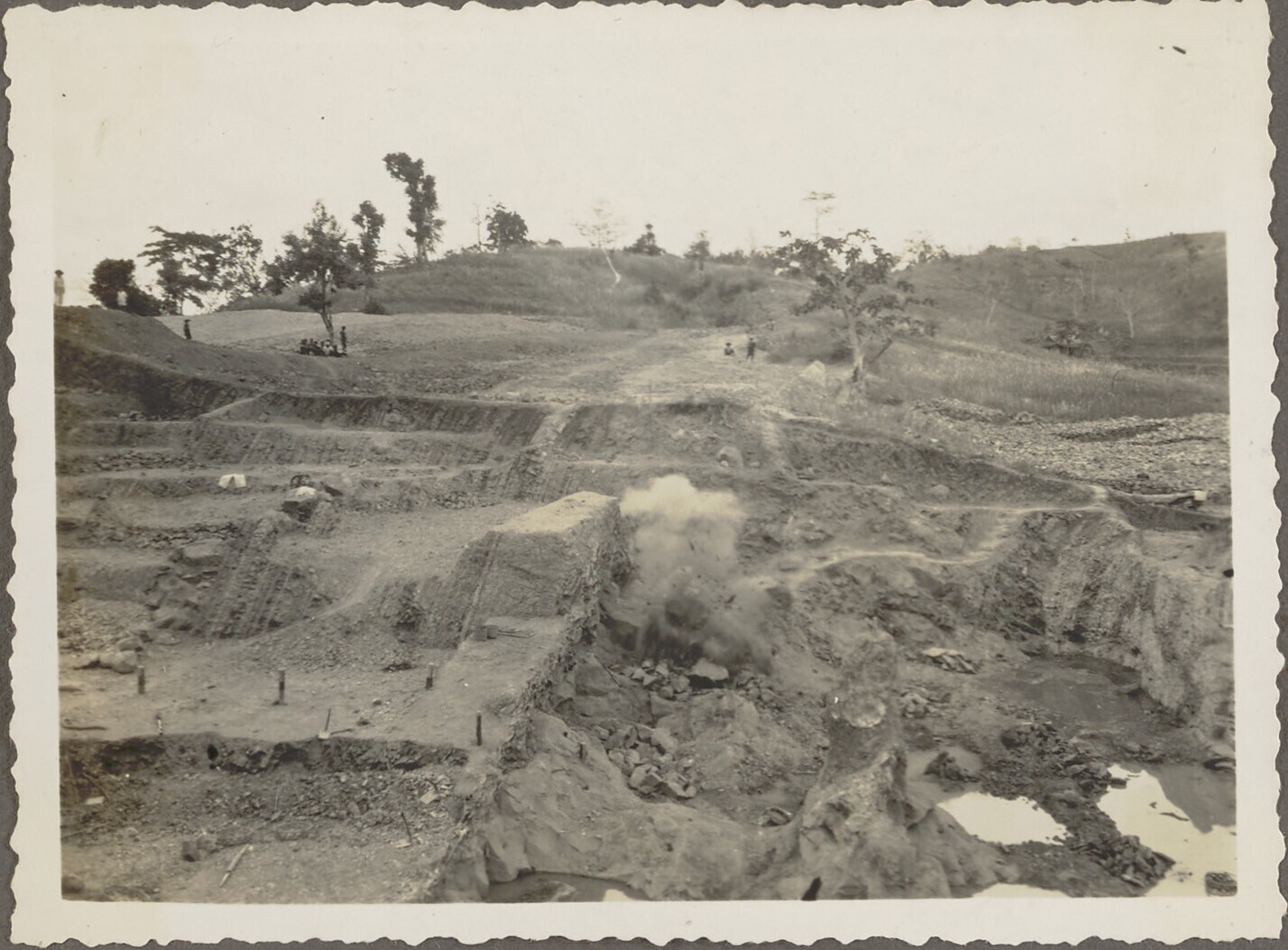 Steenwinning bij Goenoengbara met heuvels van Tjolom...