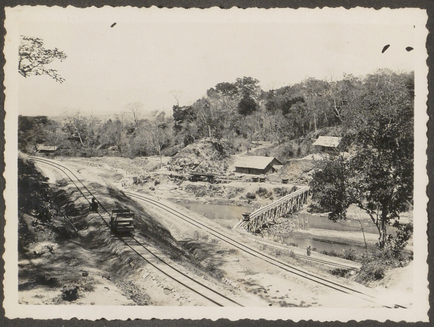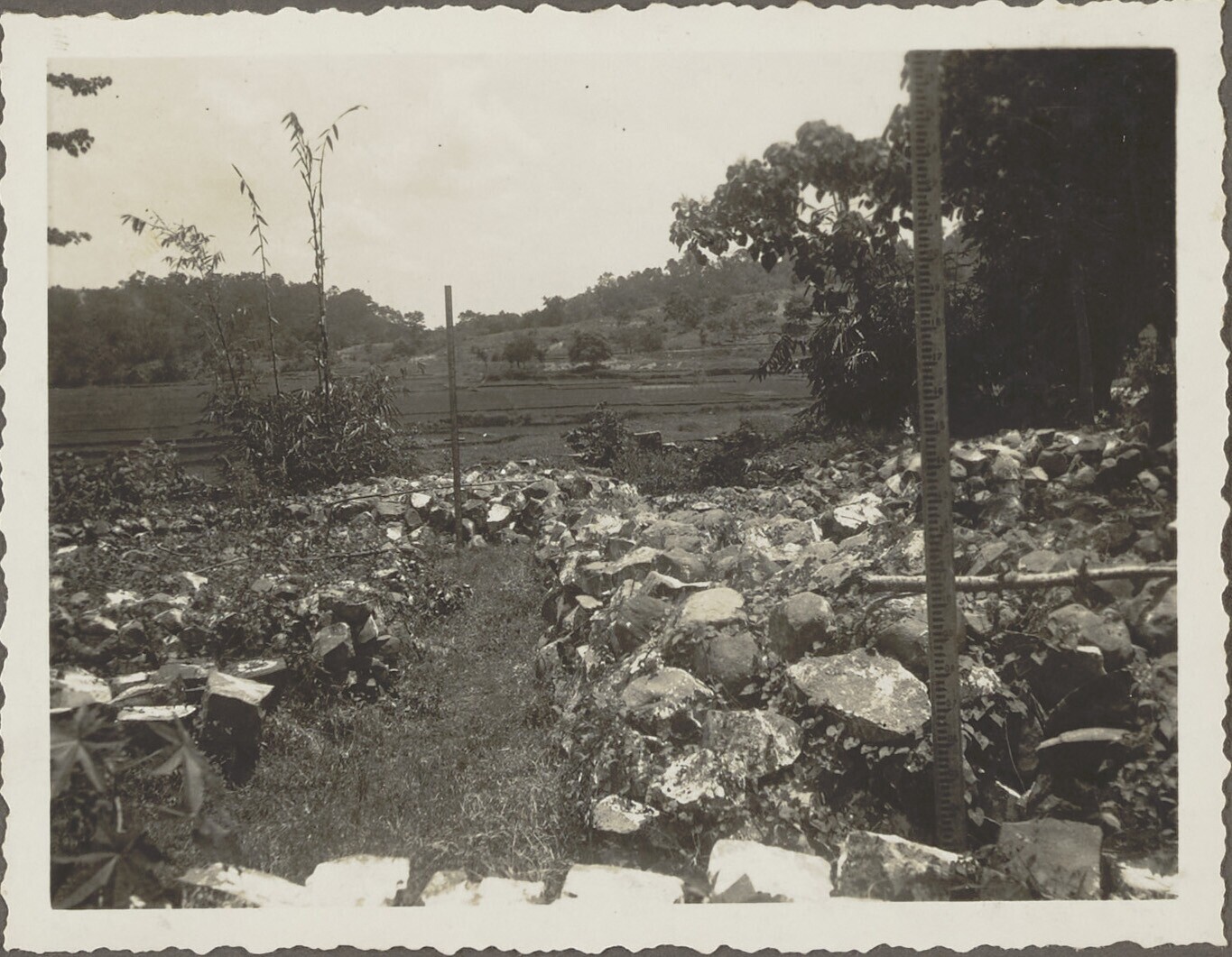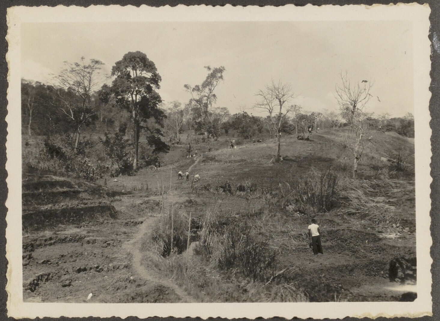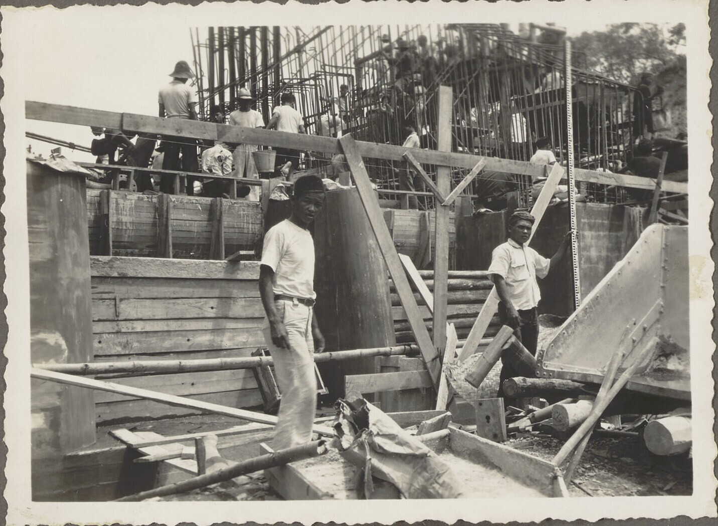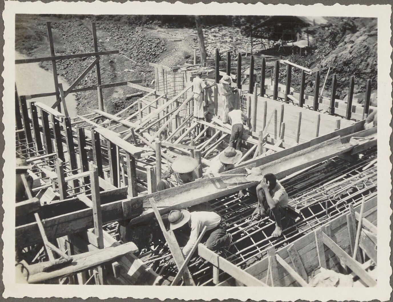 Aanleg van overlaat bij Kratjak door Javaanse arbeiders