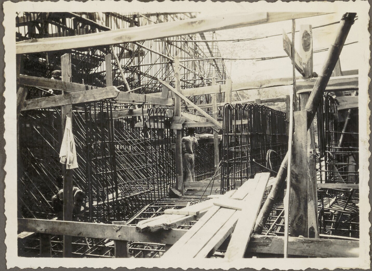 Bouwplaats van een waterinstallatie met Javaanse arb...