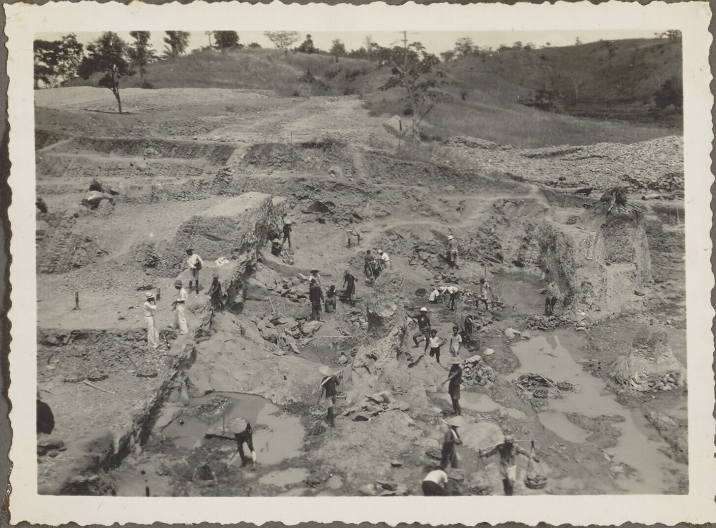 Javaanse arbeiders op een steenwinningsterrein bij G...