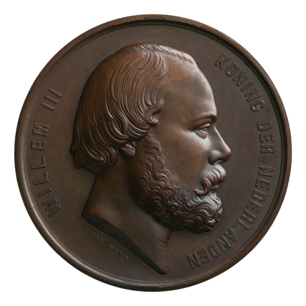 Muntproef in laagreliëf met het borstbeeld van Wilhe...