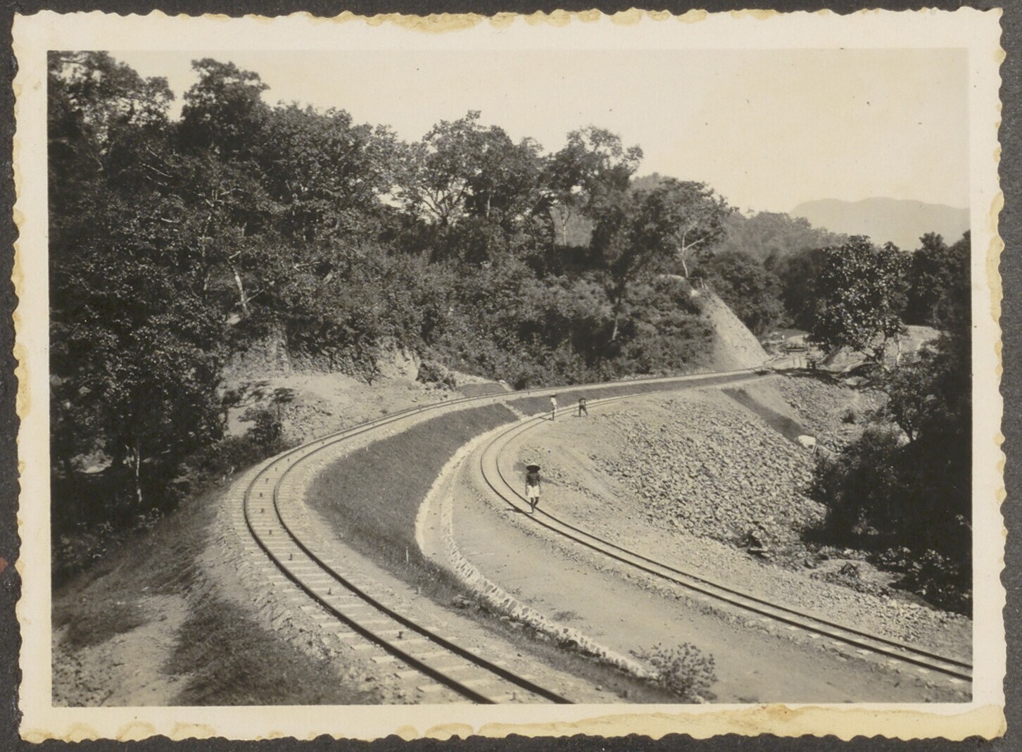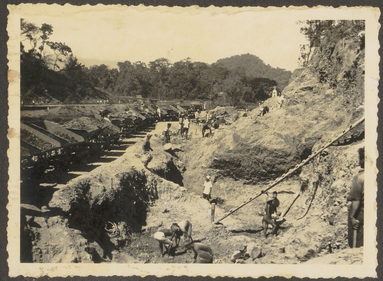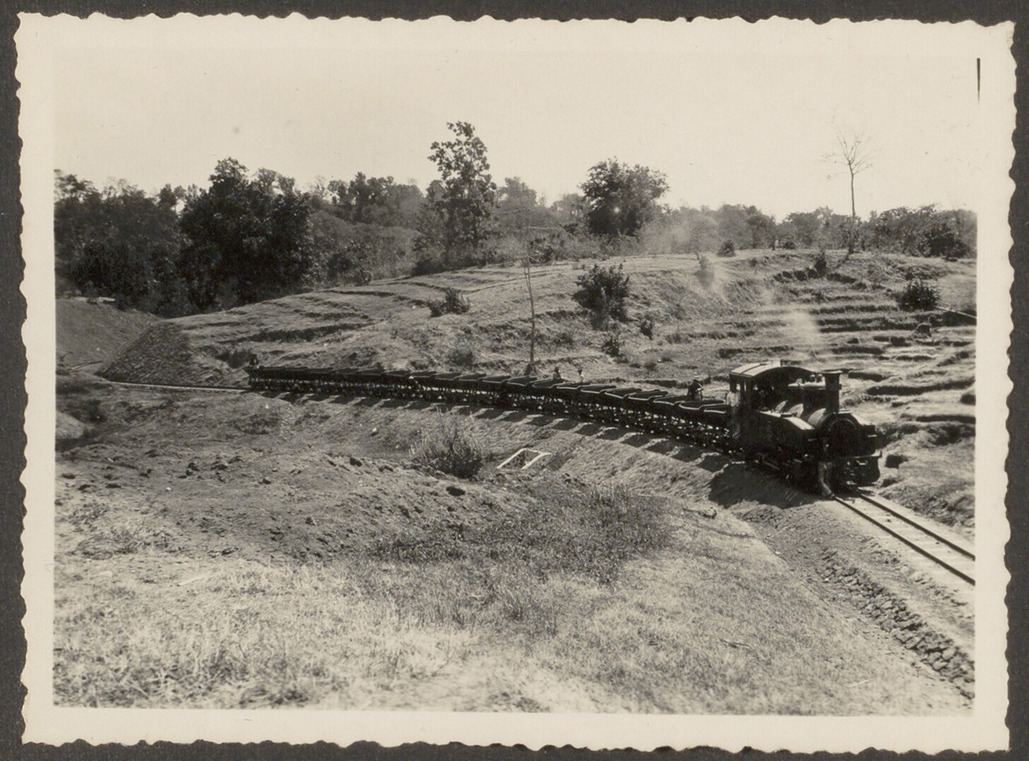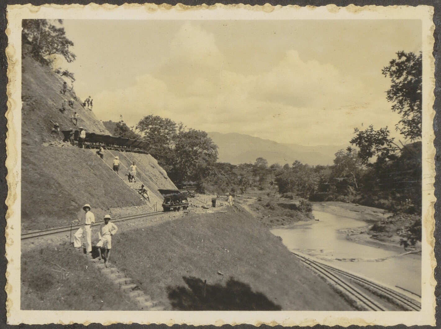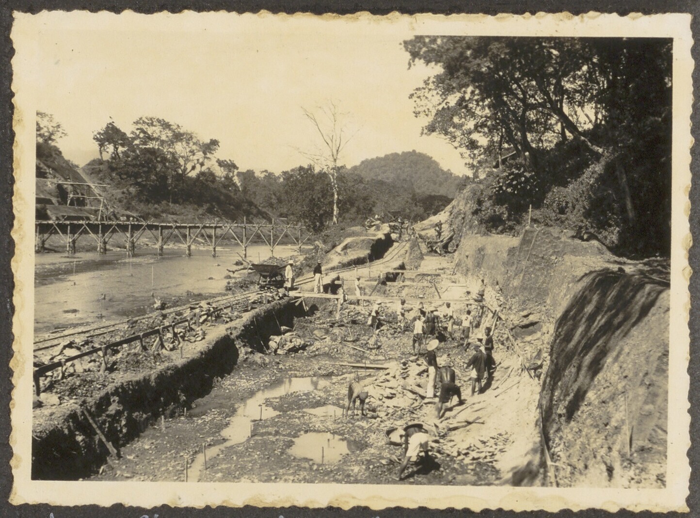 Aanleg van een spoorbaan door Javaanse arbeiders