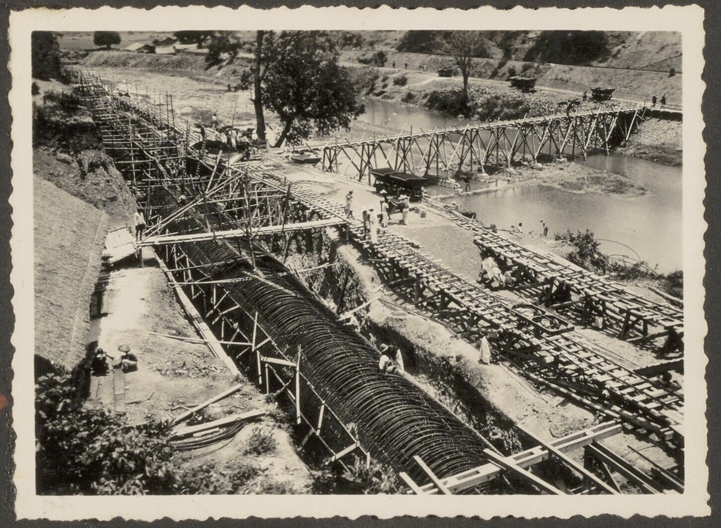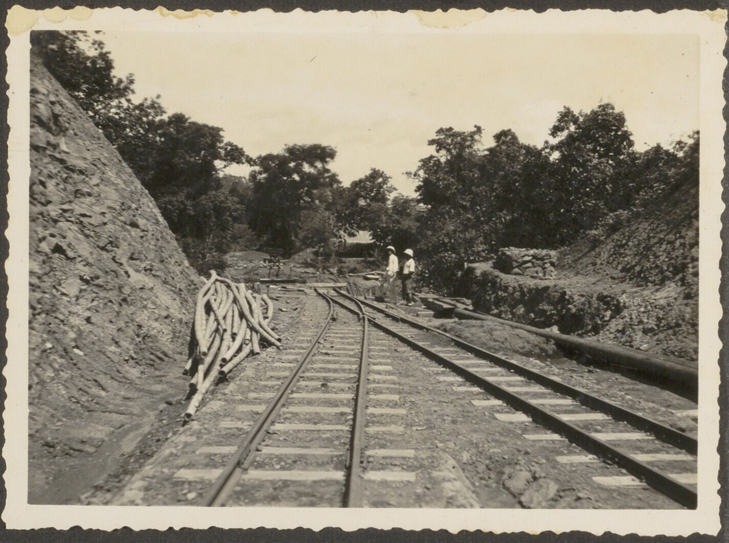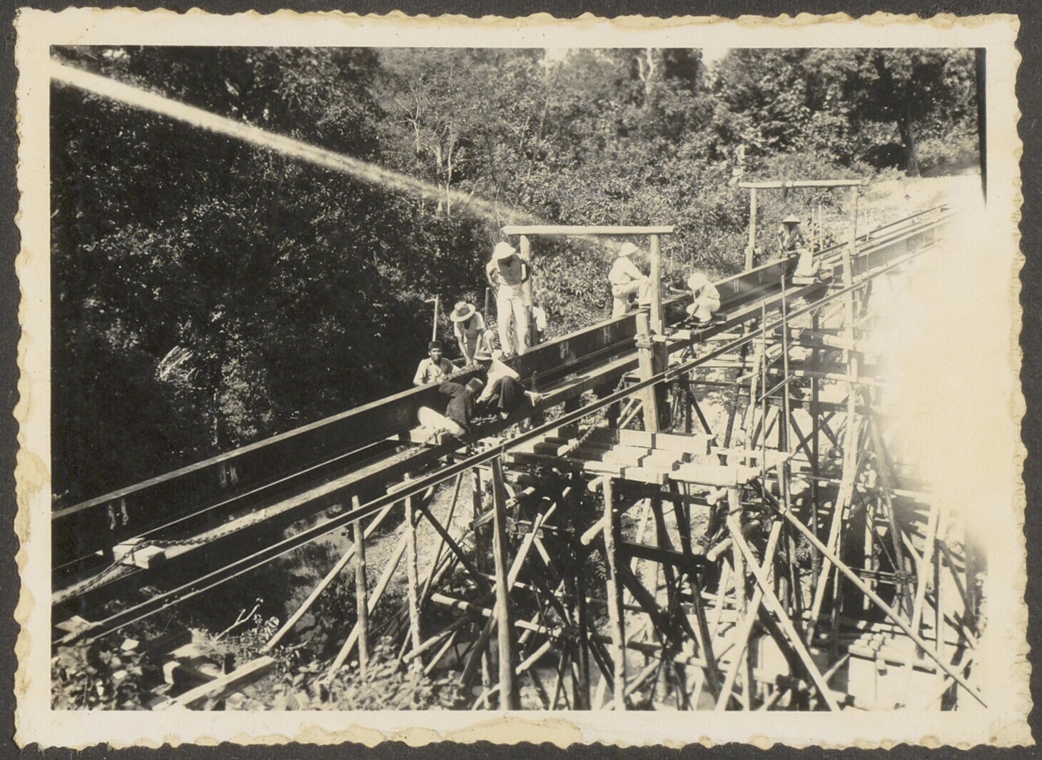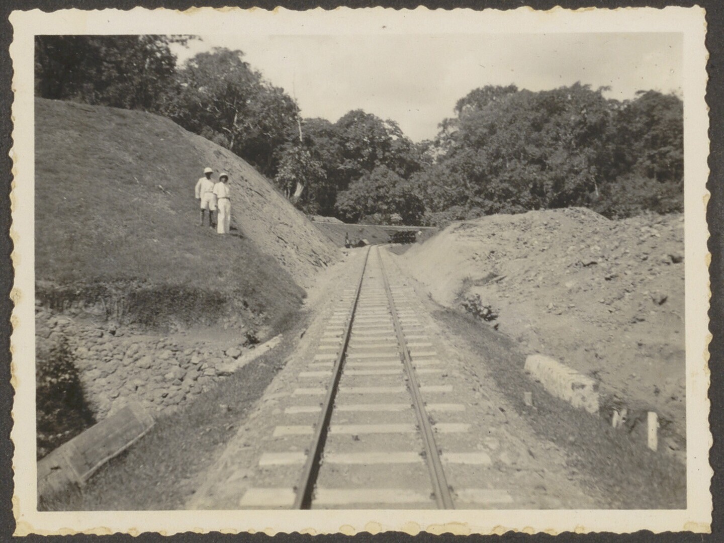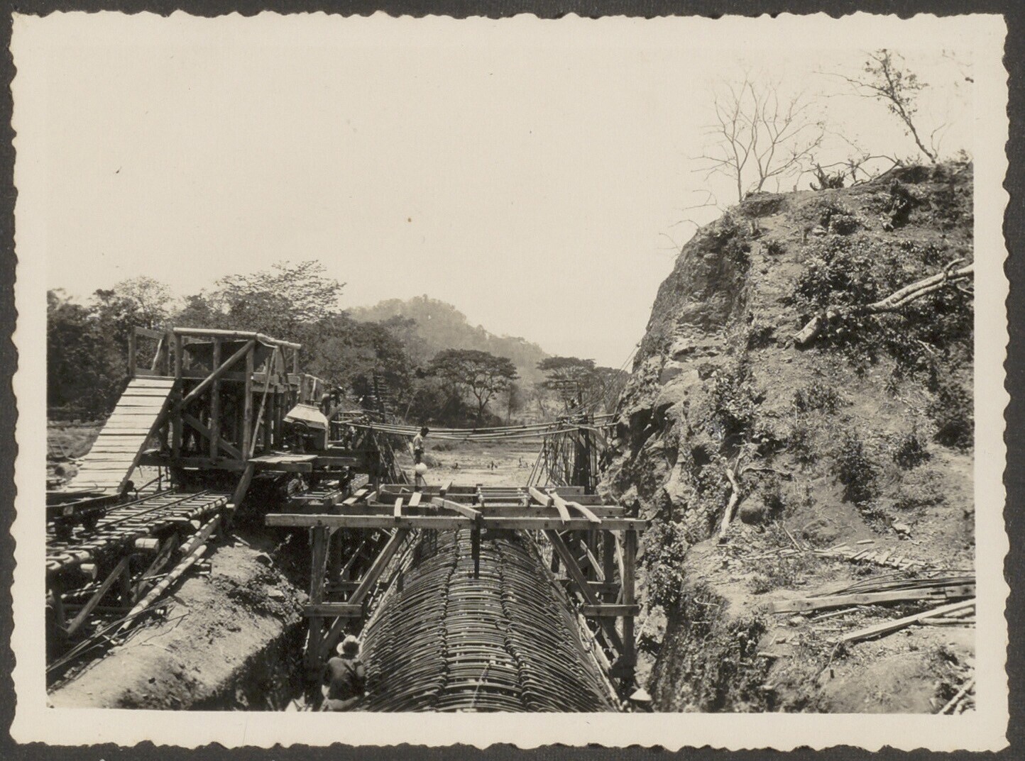 Aanleg van een spoorbaan door Javaanse arbeiders