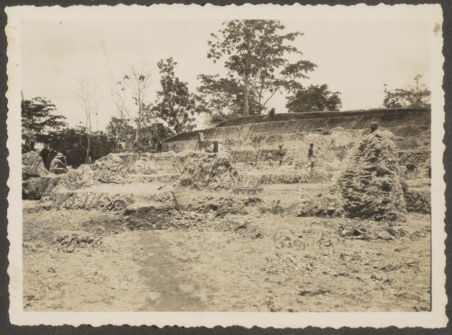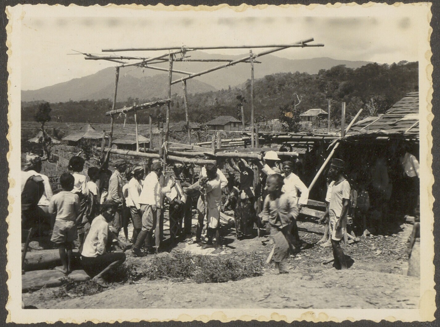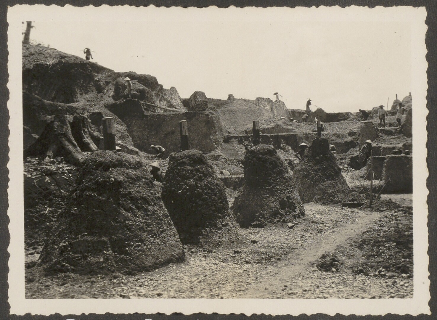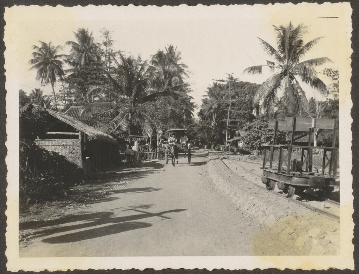 Aanleg van een spoorbaan door Javaanse arbeiders