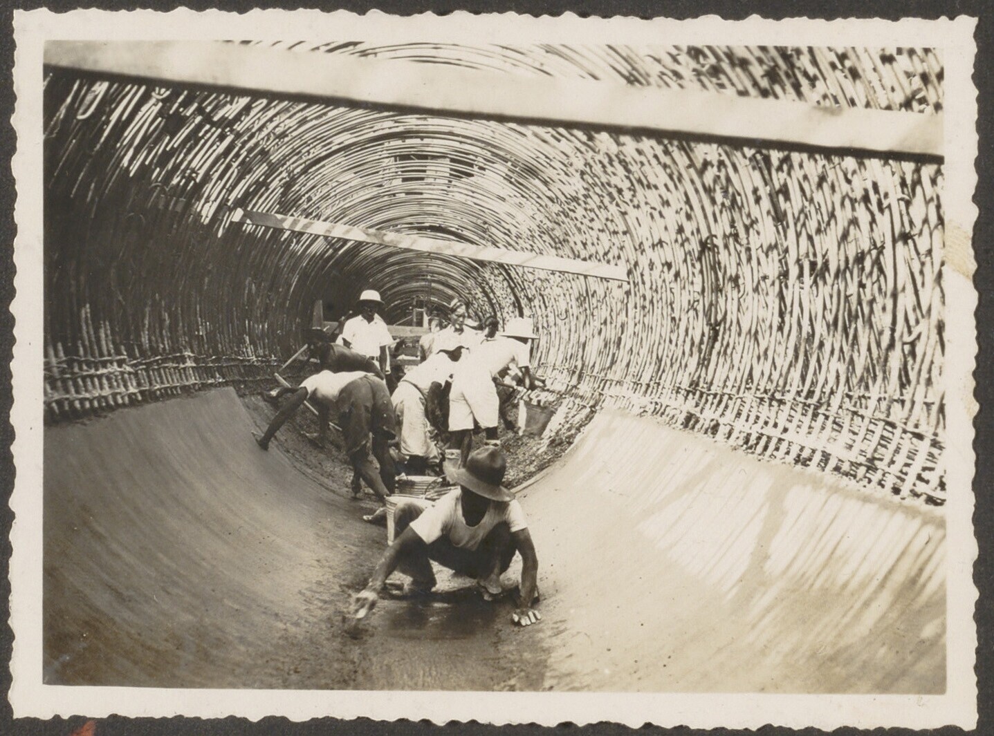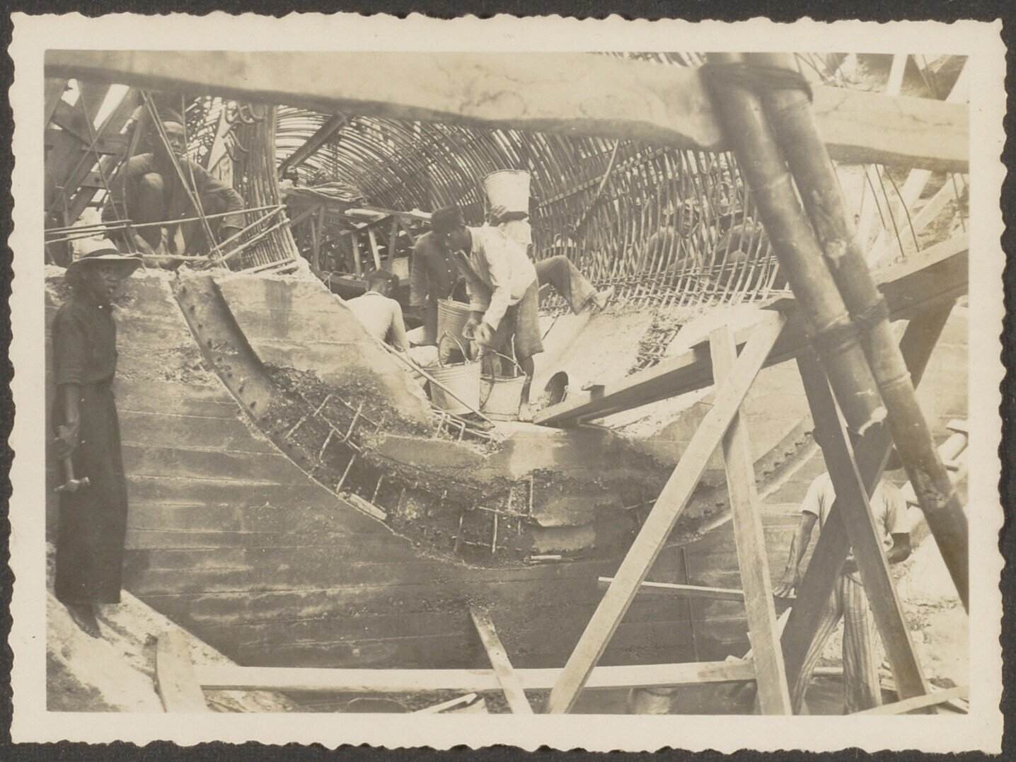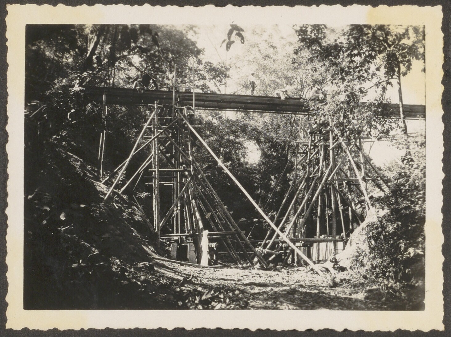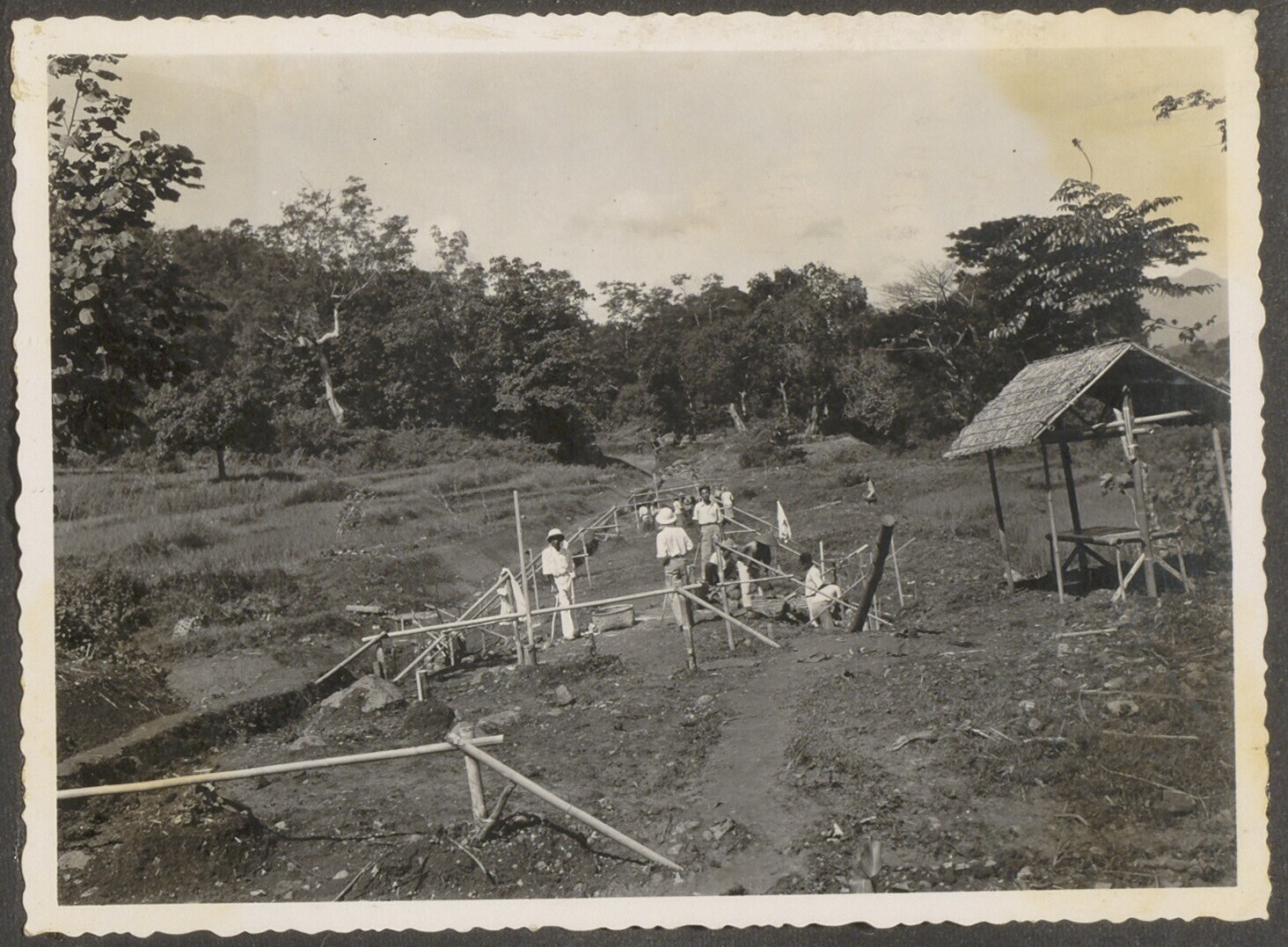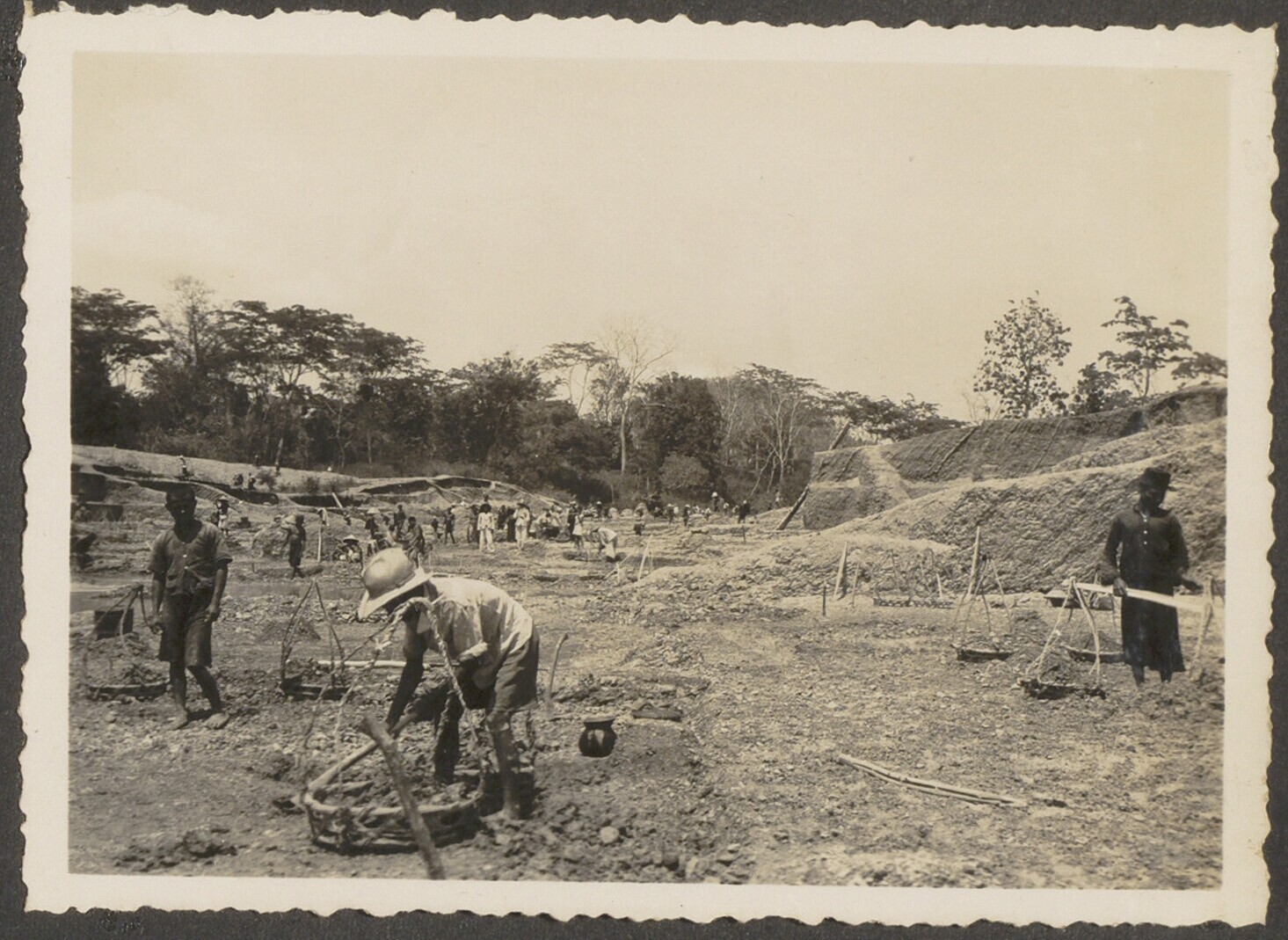 Aanleg van een spoorbaan door Javaanse arbeiders