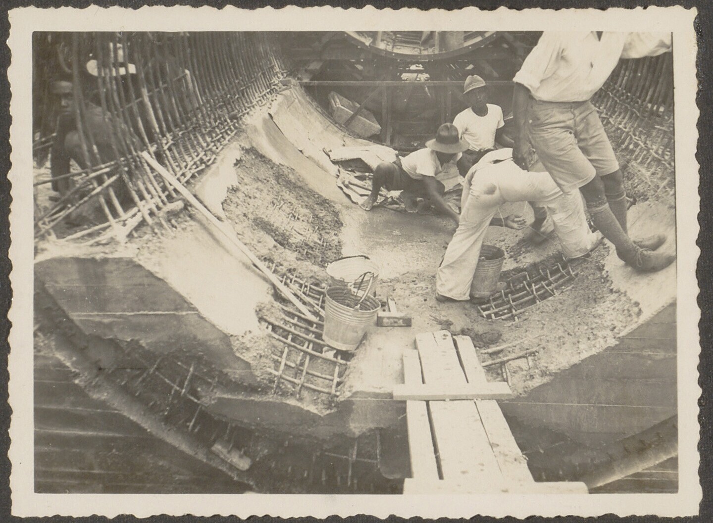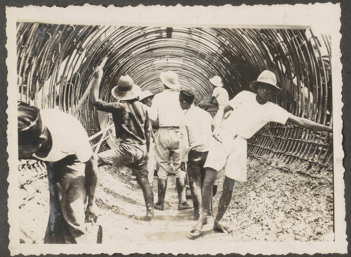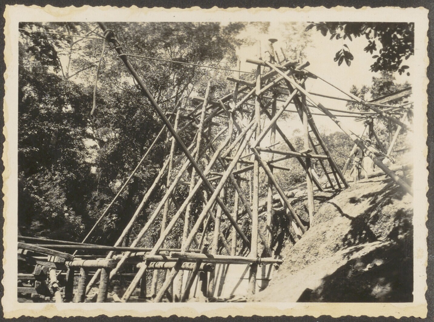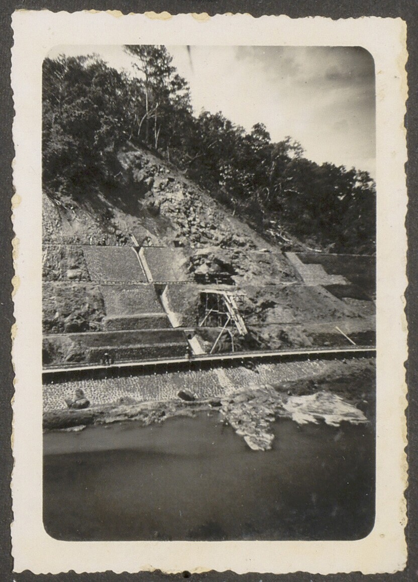 Aanleg van een spoorbaan door Javaanse arbeiders