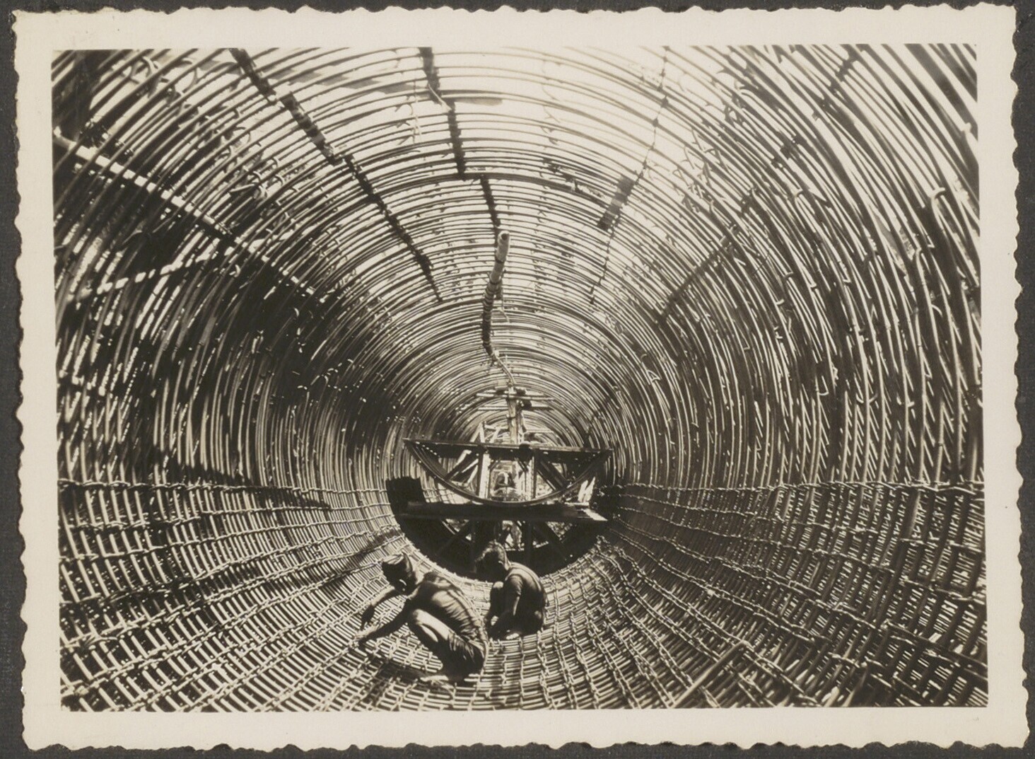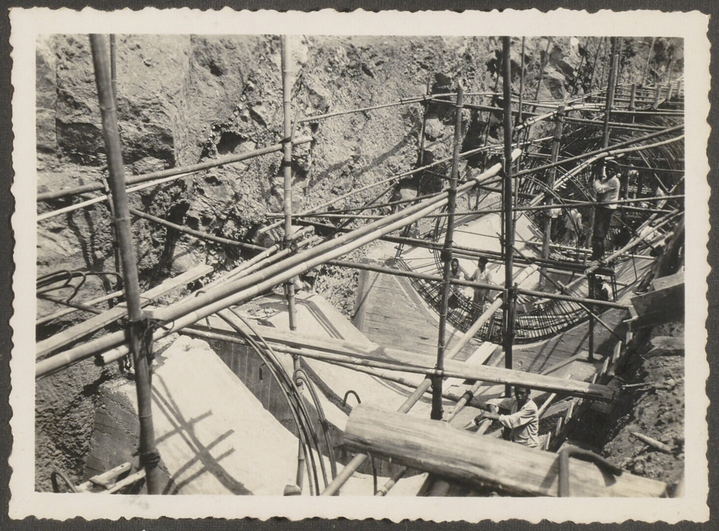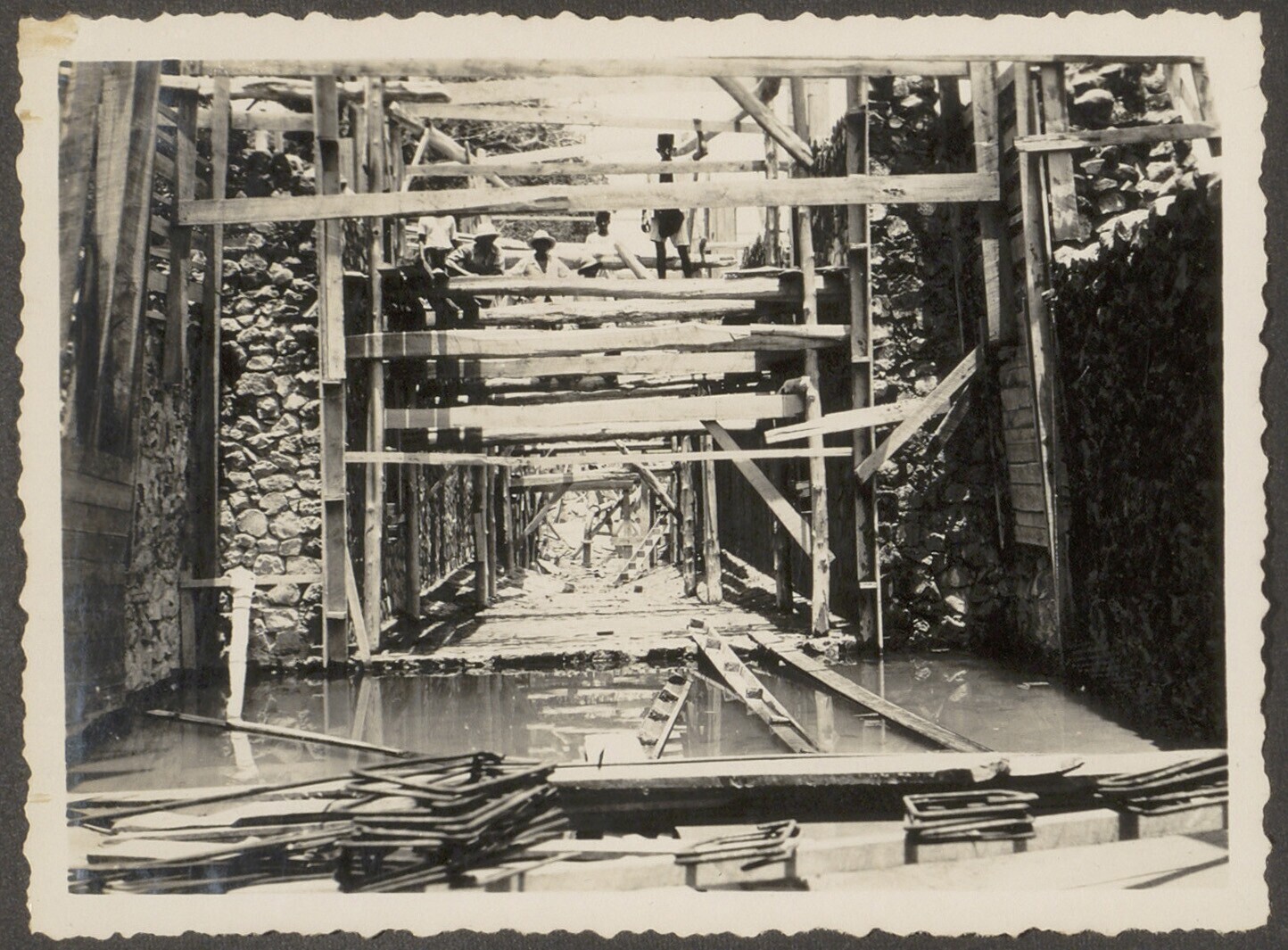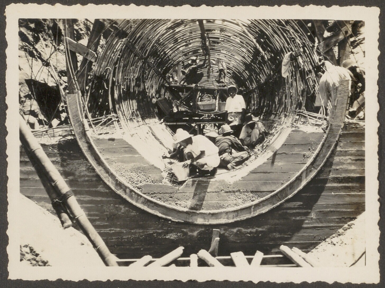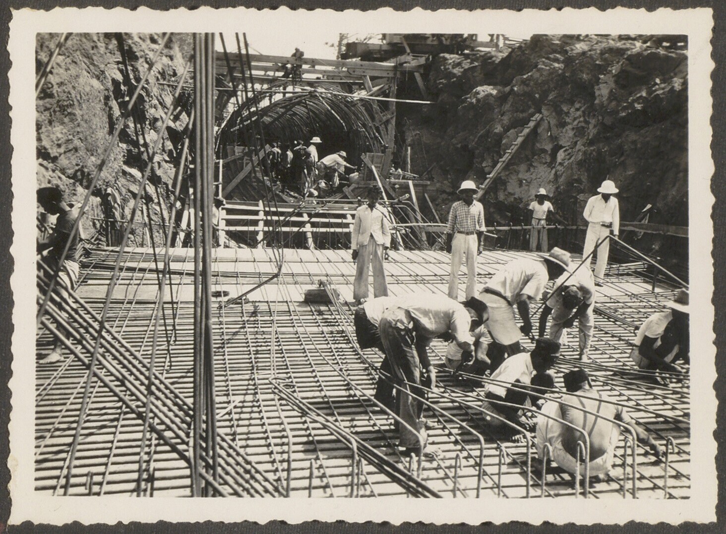 Aanleg van een spoorbaan door Javaanse arbeiders