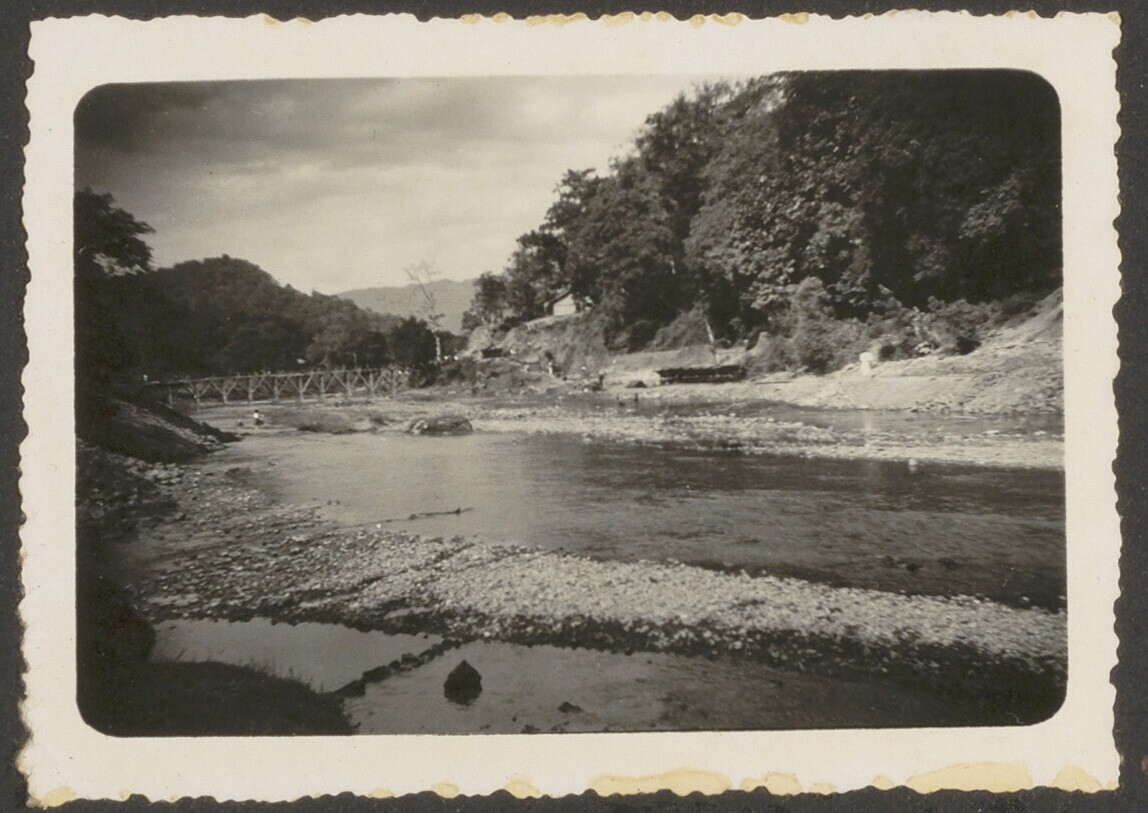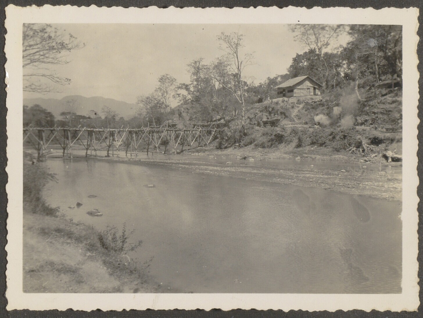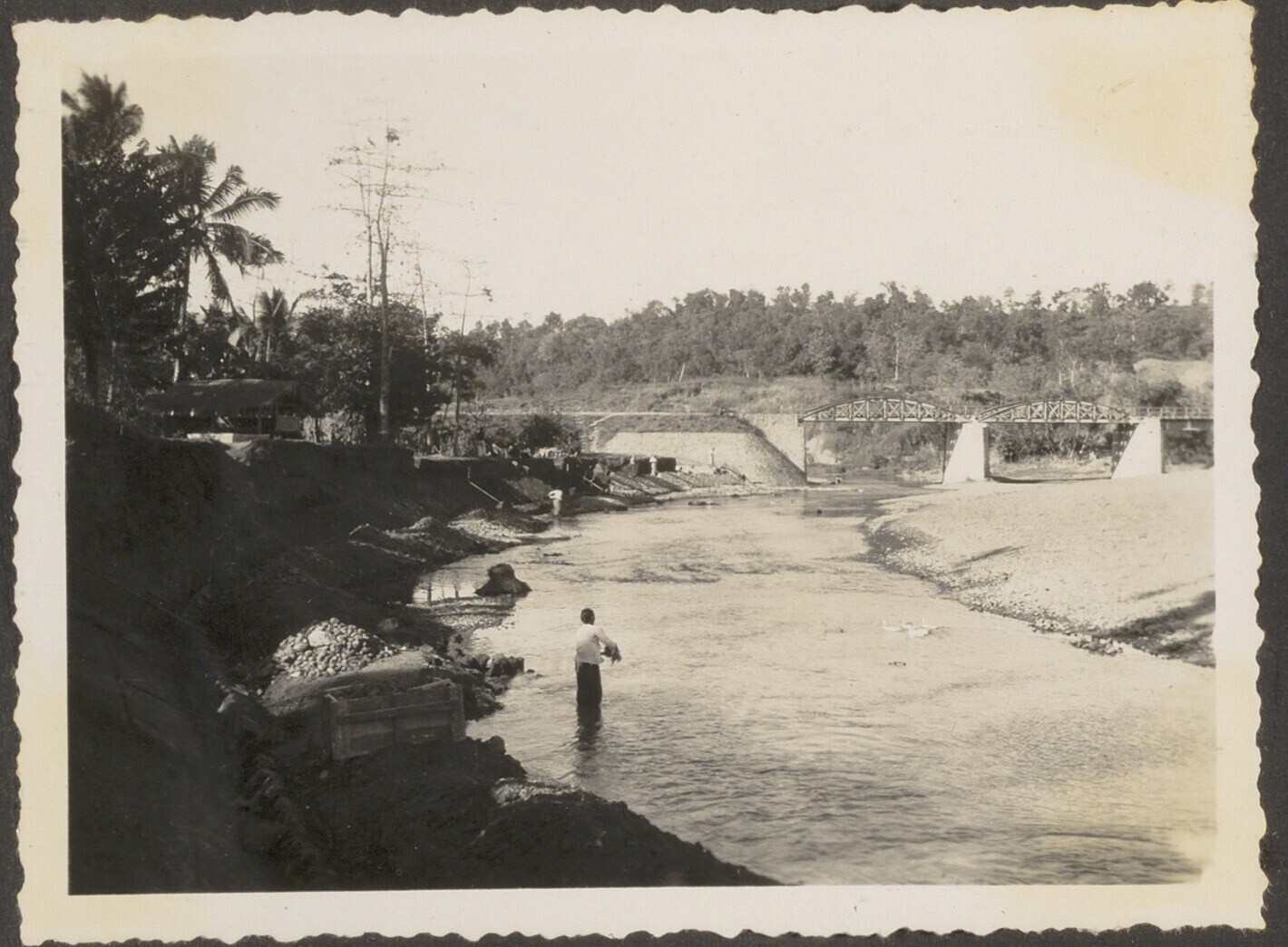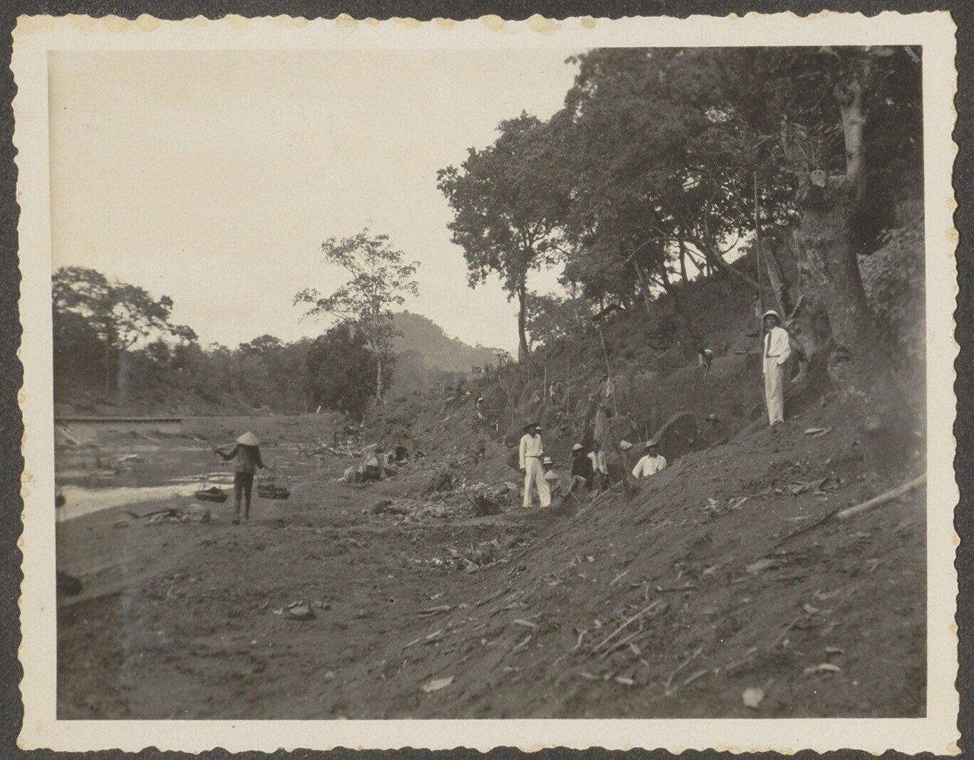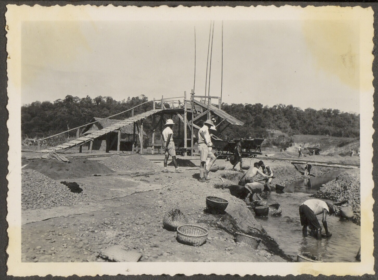 Aanleg van spoorbaan lang een rivier door Javaanse a...