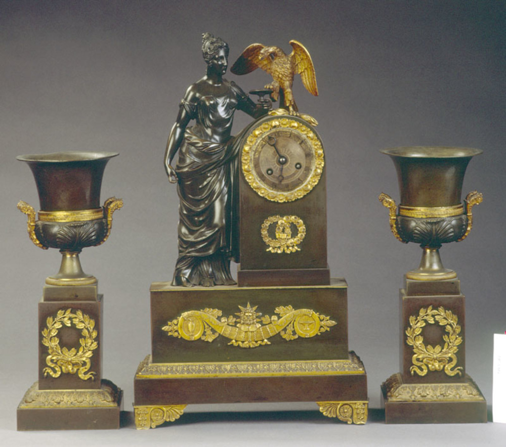 Driedelig bronzen klokkenstel, ca. 1820-1830