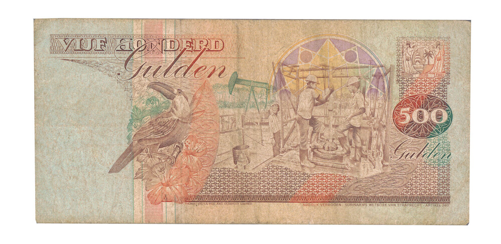 Bankbiljet van vijfhonderd gulden van Suriname, mode...