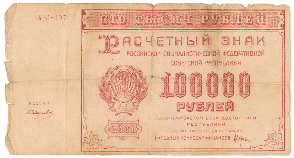 Bankbiljet van honderdduizend roebel uit Rusland