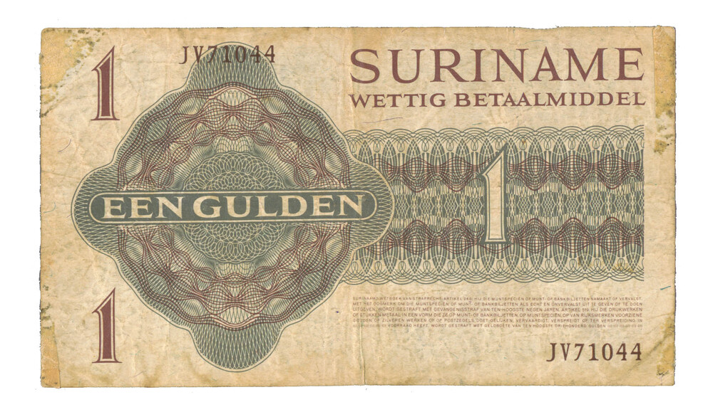 Muntbiljet van één gulden 1974 uit Suriname, nummer:...