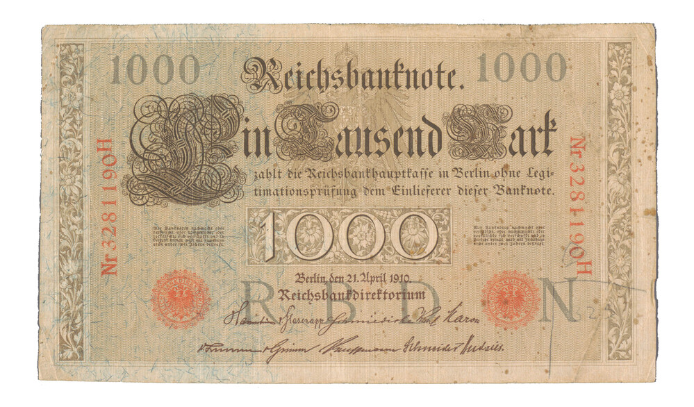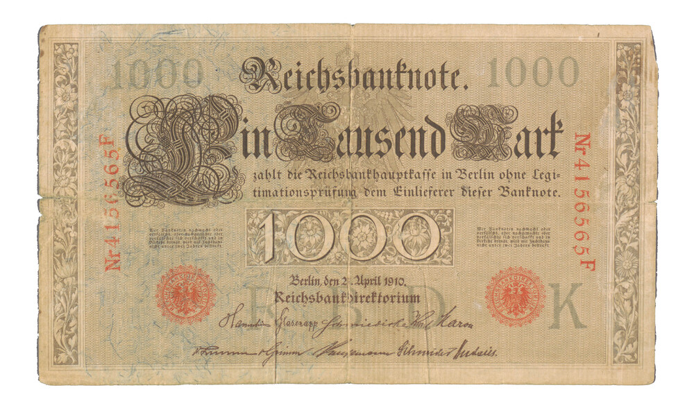 Bankbiljet van duizend mark uit 1910 uit Duitsland