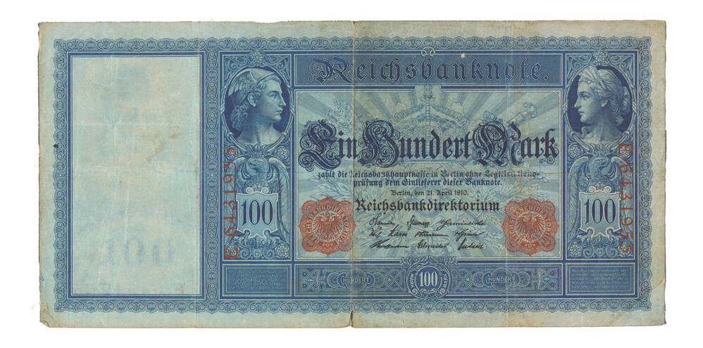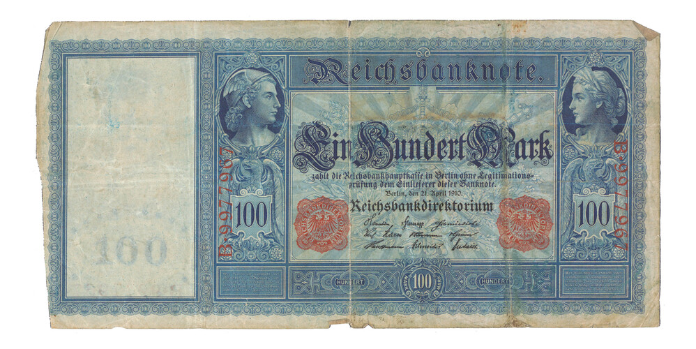 Bankbiljet van honderd mark uit 1910 uit Duitsland