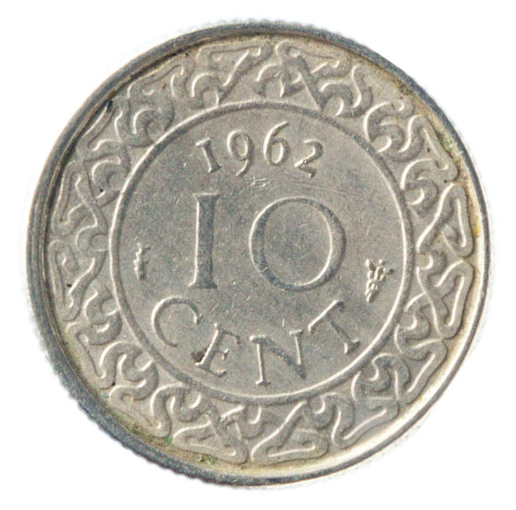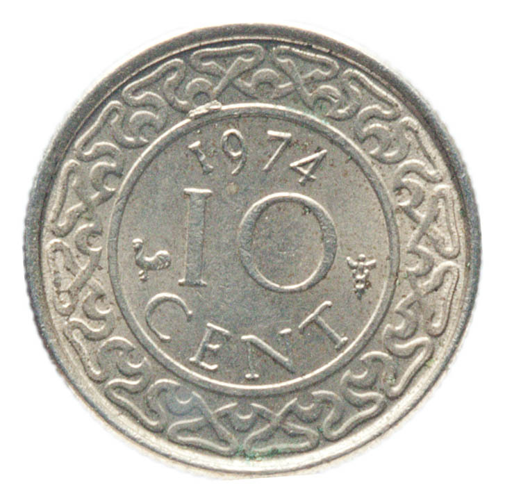 Tien cent (dubbeltje) uit Suriname op naam van Julia...