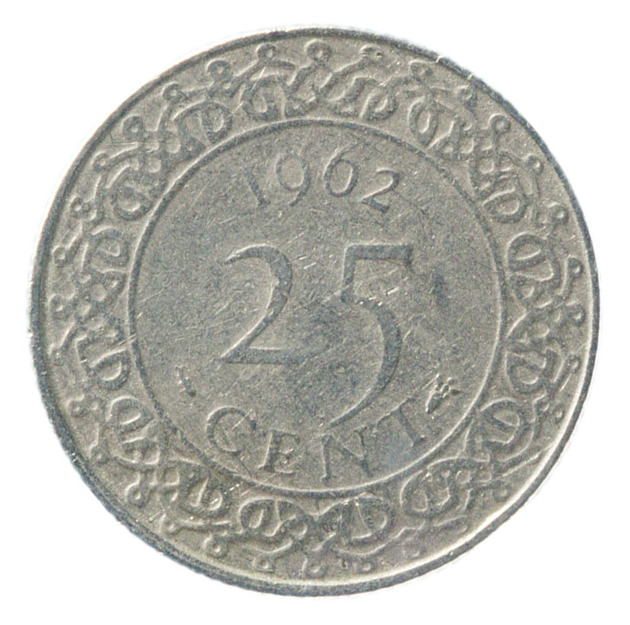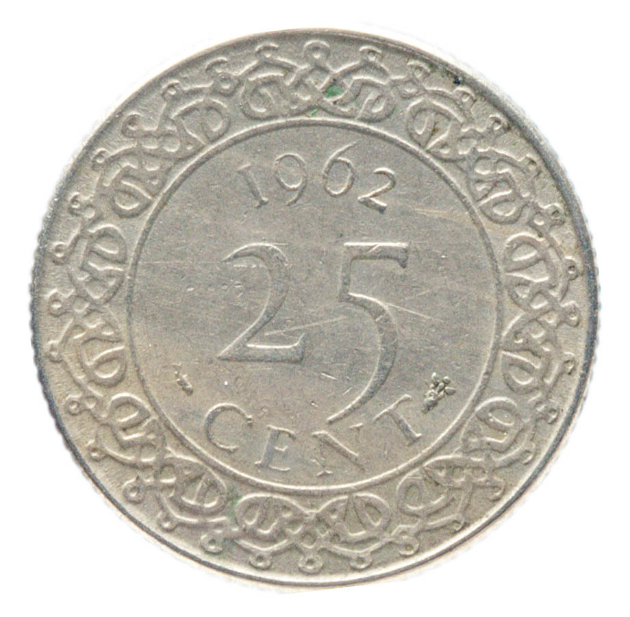Vijfentwintig cent (kwartje) uit Suriname op naam va...