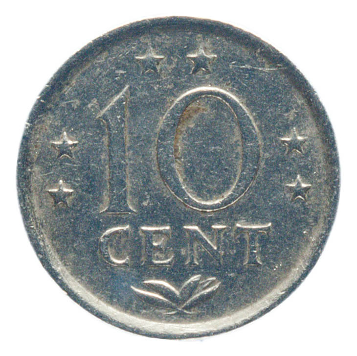 Tien cent (dubbeltje) uit de Nederlandse Antillen op...
