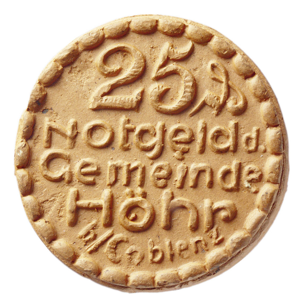 Vijfentwintig pfennig (noodmunt) uit Höhr, met zwart...