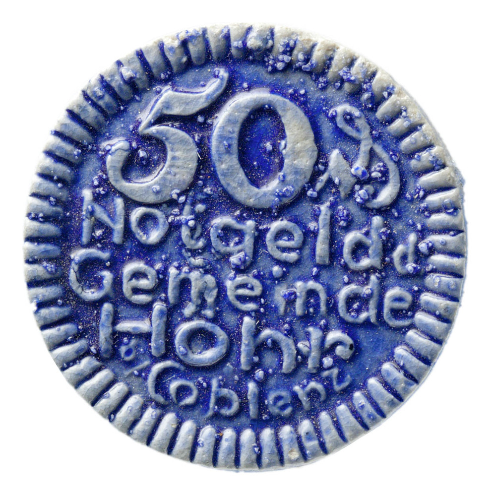 Vijftig pfennig (noodmunt) uit Höhr, met blauwe kleur