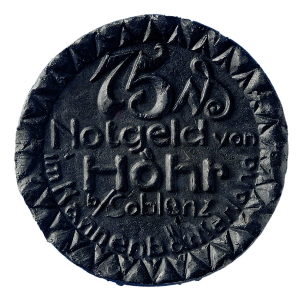 Vijfenzeventig pfennig (noodmunt) uit Höhr, met zwar...