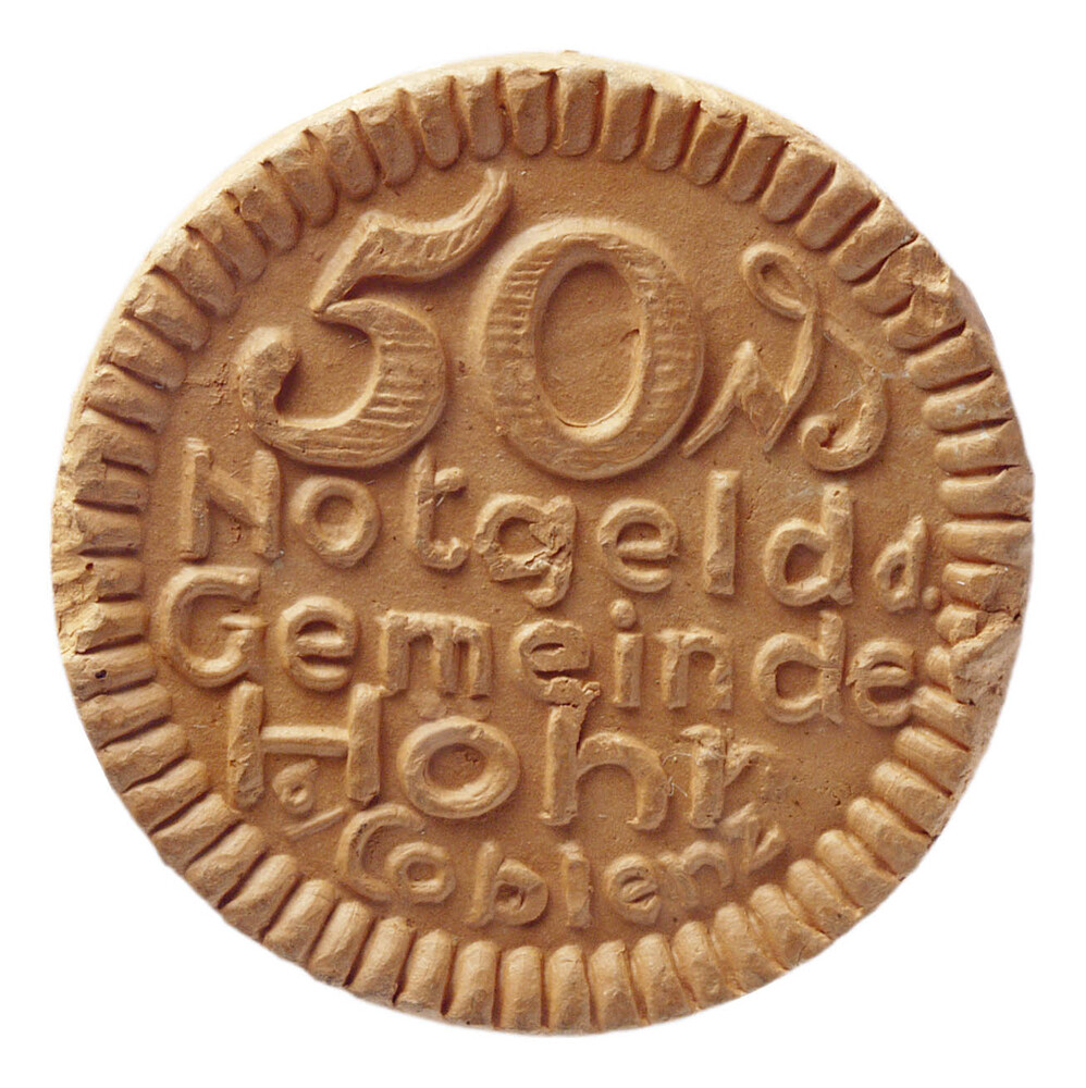 Vijftig pfennig (noodmunt) uit Höhr, met grijze kleur